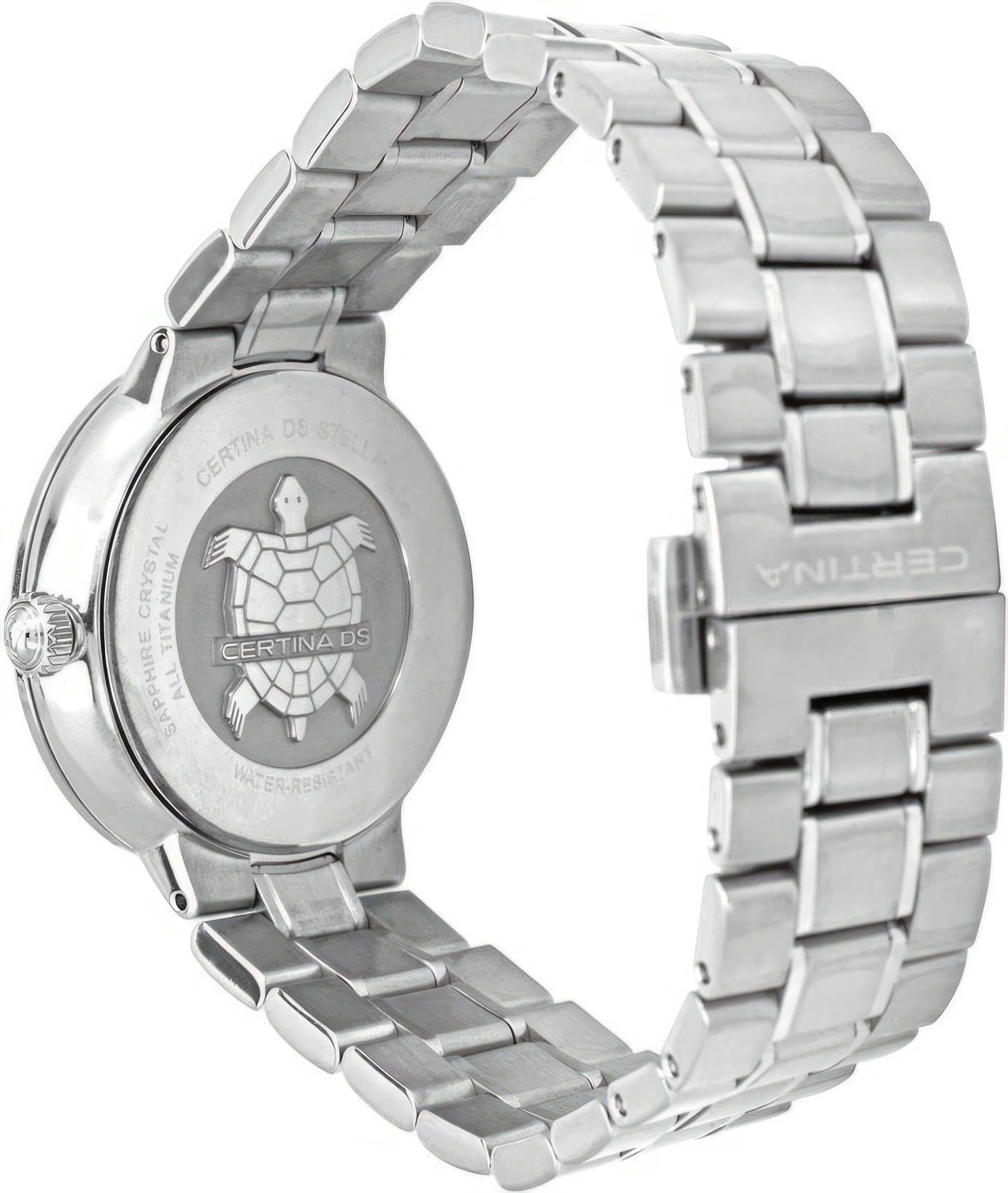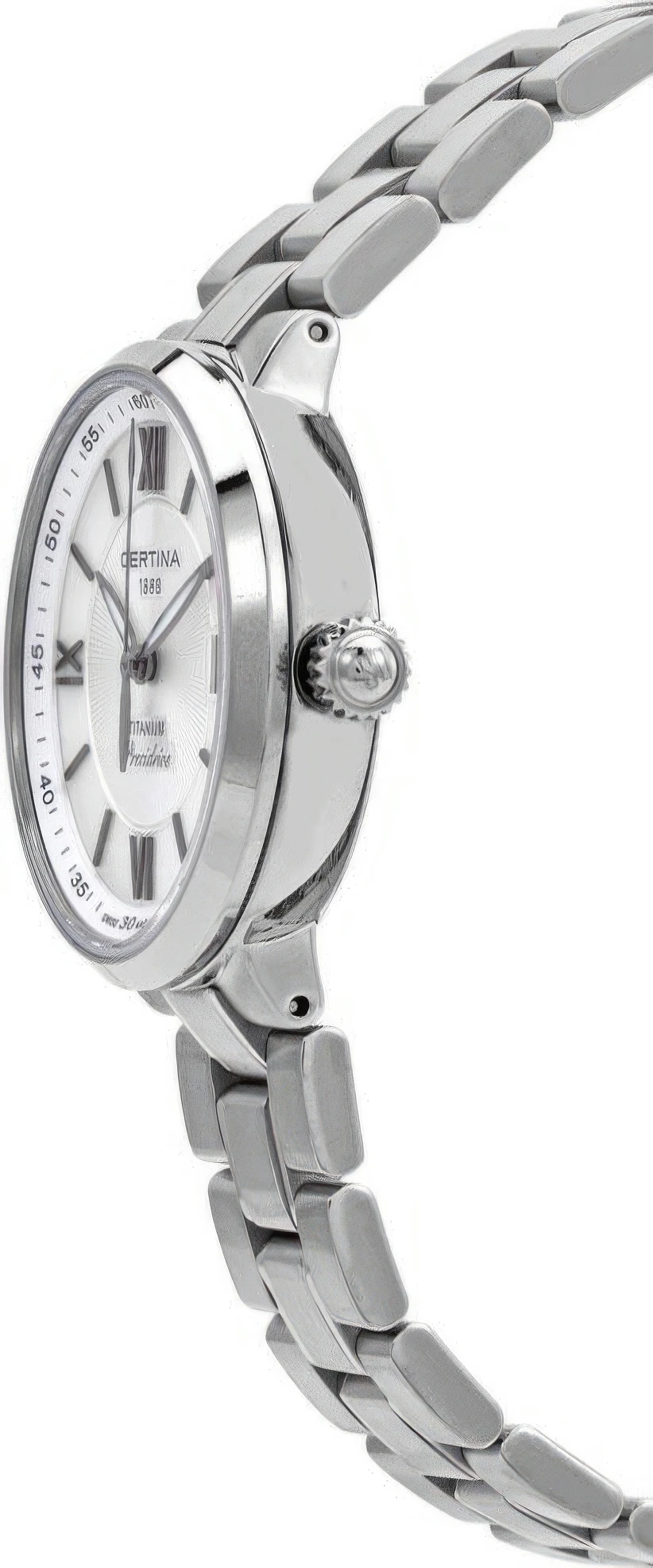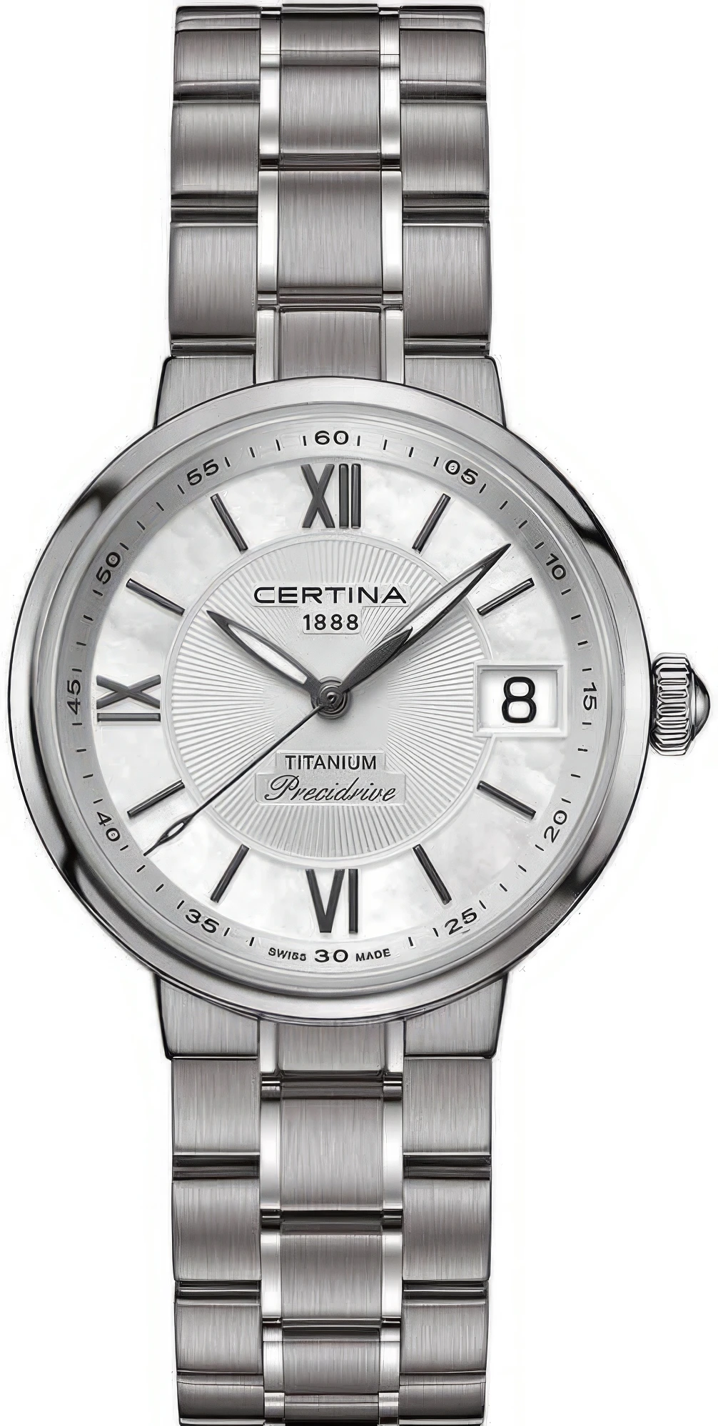 Точный швейцарский механизм в элегантном корпусе — стильное дополнение продуманного имиджа. Кварцевые женские наручные часы. Фирменная технология PreciDrive обеспечивает погрешность не более +/-10 сек в год (в 10 раз точнее обычных кварцевых часов). Круглый титановый корпус c полированной поверхностью. Двухуровневый циферблат с радиальным декоративным узором и перламутровой вставкой, с накладными метками в виде штрихов и римских цифр. Листовидные стрелки в стиле Feuille с люминесцентным покрытием, которое светится в темноте после непродолжительной зарядки на свету. Окошко даты находится в положении 3 часа. Рифленая заводная головка. Задняя крышка украшена гравировкой. Надежный титановый браслет с раскладывающейся застежкой. Застежка с системой блокировки.
