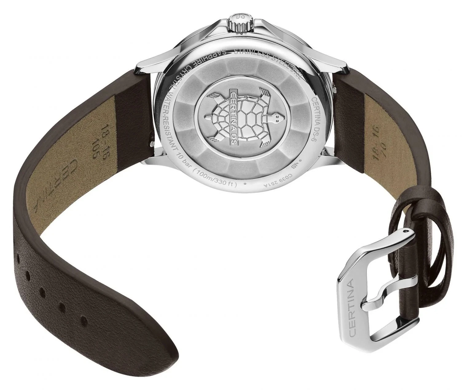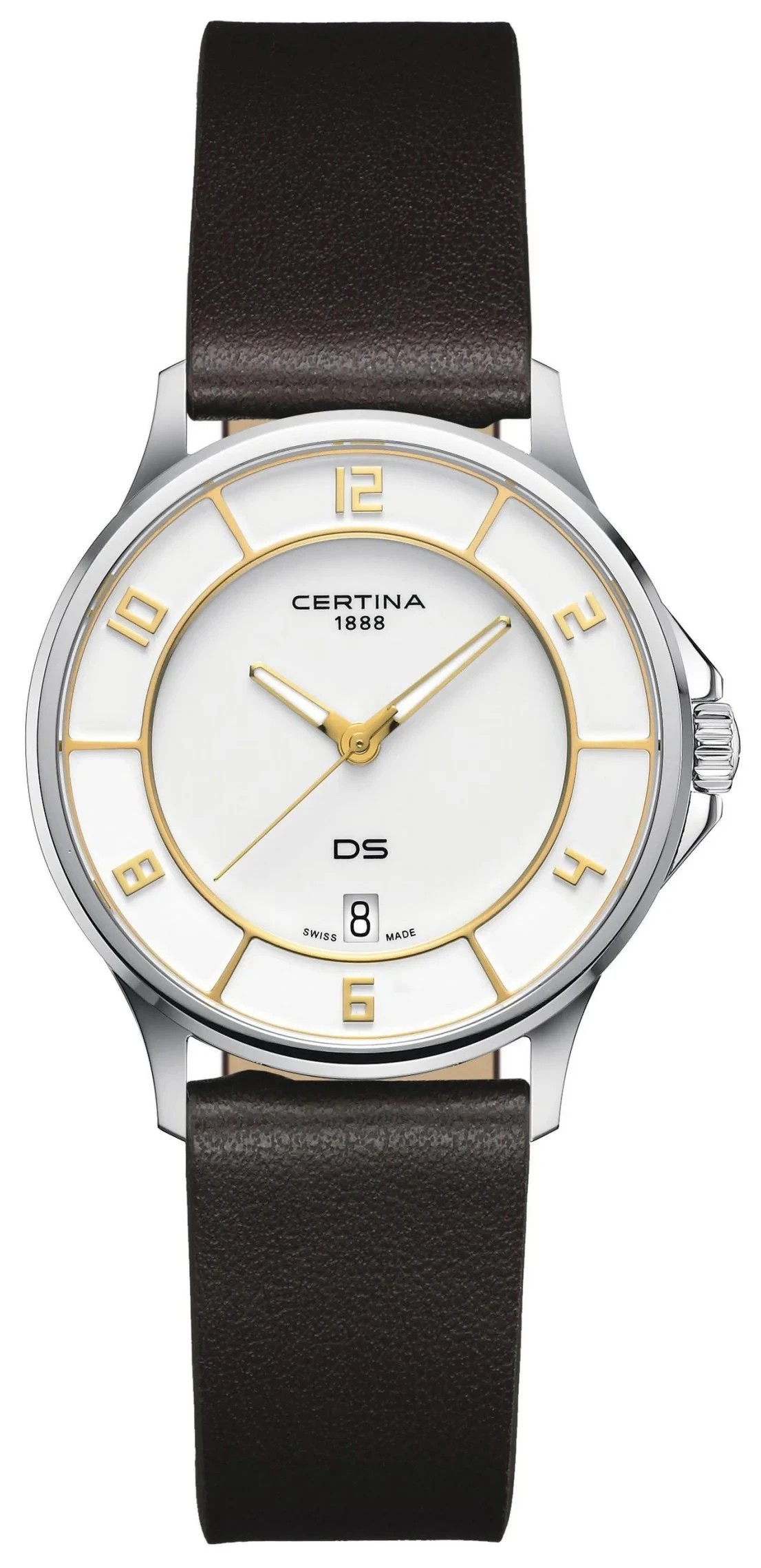 Женские наручные часы Certina DS-6 C039.251.17.017.01. Точный кварцевый механизм с аналоговой индикацией. Корпус изготовлен из высококачественной нержавеющей стали 316L с высокими антикоррозийными свойствами. На стрелки и отметки нанесен светонакопительный состав, благодаря этому считывать информацию с циферблата возможно и в темноте. На циферблате отображается текущее число месяца. Ремешок изготовлен из кожи. Сапфировое стекло. Искусственно изготовленное стекло с высокой прочностью и устойчивостью к царапинам. Часы являются водонепроницаемыми до 10 Бар. Цвет корпуса: Серебристый. Цвет циферблата: Белый. Ширина (с заводной головкой): 35мм. Толщина: 7мм. Гарантия: 2 года.