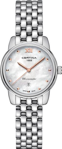 <b>Женские наручные часы Certina Женские часы C033.051.11.118.01</b>. Точный кварцевый механизм с аналоговой индикацией. Корпус изготовлен из высококачественной нержавеющей стали 316L с высокими антикоррозийными свойствами. На циферблате отображается текущее число месяца. Браслет из нержавеющей стали. Сапфировое стекло. Искусственно изготовленное стекло с высокой прочностью и устойчивостью к царапинам. Часы являются водонепроницаемыми до 10 Бар. Цвет корпуса: Серебристый. Цвет циферблата: Серебристый. Ширина (с заводной головкой): 27мм. Толщина: 8мм. Гарантия: 2 года.