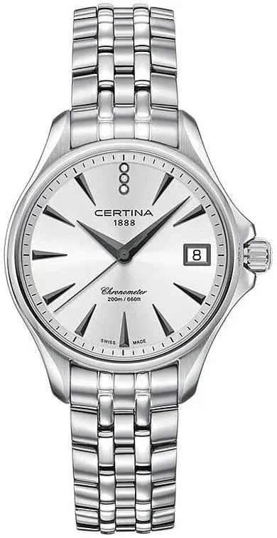 <b>Женские наручные часы Certina DS Action C032.051.11.036.00.</b> Точный кварцевый механизм с аналоговой индикацией. Корпус изготовлен из высококачественной нержавеющей стали 316L с высокими антикоррозийными свойствами. На циферблате отображается текущее число месяца. Браслет из нержавеющей стали. Сапфировое стекло. Искусственно изготовленное стекло с высокой прочностью и устойчивостью к царапинам. Часы являются водонепроницаемыми до 20 Бар. Цвет корпуса: Серебристый. Цвет циферблата: Серебристый. Ширина (с заводной головкой): 34мм. Толщина: 10мм. Гарантия: 2 года.