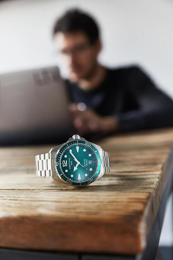 Мужские наручные часы Certina DS Action C032.451.11.097.00. Точный кварцевый механизм с аналоговой индикацией. Корпус изготовлен из высококачественной нержавеющей стали 316L с высокими антикоррозийными свойствами. На стрелки и отметки нанесен светонакопительный состав, благодаря этому считывать информацию с циферблата возможно и в темноте. На циферблате отображается текущее число месяца. Браслет из нержавеющей стали. Сапфировое стекло. Искусственно изготовленное стекло с высокой прочностью и устойчивостью к царапинам. Часы являются водонепроницаемыми до 30 Бар. Цвет корпуса: Серебристый. Цвет циферблата: Зеленый. Гарантия: 2 года.