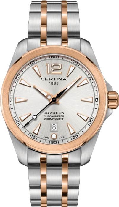 <b>Мужские наручные часы Certina DS Action C032.851.22.037.00</b>. Точный кварцевый механизм с аналоговой индикацией. Корпус изготовлен из высококачественной нержавеющей стали 316L с высокими антикоррозийными свойствами. На стрелки и отметки нанесен светонакопительный состав, благодаря этому считывать информацию с циферблата возможно и в темноте. На циферблате отображается текущее число месяца. Браслет из нержавеющей стали. Сапфировое стекло. Искусственно изготовленное стекло с высокой прочностью и устойчивостью к царапинам. Часы являются водонепроницаемыми до 20 Бар. Цвет корпуса: Серебристый. Цвет циферблата: Серебристый. Ширина (с заводной головкой): 41мм. Толщина: 12мм. Гарантия: 2 года.