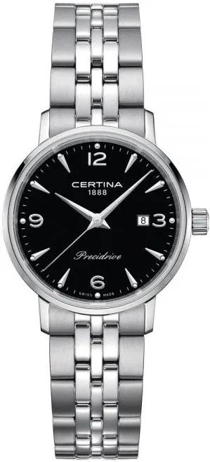 <b>Женские наручные часы Certina Женские наручные часы C035.210.11.057.00.</b> Точный кварцевый механизм с аналоговой индикацией. Корпус изготовлен из высококачественной нержавеющей стали 316L с высокими антикоррозийными свойствами. На циферблате отображается текущее число месяца. Браслет из нержавеющей стали. Сапфировое стекло. Искусственно изготовленное стекло с высокой прочностью и устойчивостью к царапинам. Часы являются водонепроницаемыми до 10 Бар. Цвет корпуса: Серебристый. Цвет циферблата: Черный. Гарантия: 2 года.