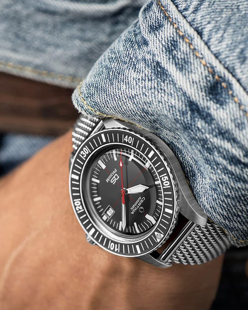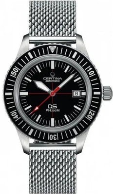 Мужские наручные часы Certina DS PH200M C036.407.11.050.00. Механические с ручным подзаводом. Корпус изготовлен из высококачественной нержавеющей стали 316L с высокими антикоррозийными свойствами. На стрелки и отметки нанесен светонакопительный состав, благодаря этому считывать информацию с циферблата возможно и в темноте. На циферблате отображается текущее число месяца. Браслет из нержавеющей стали. Органическое стекло. Часы являются водонепроницаемыми до 20 Бар. Цвет корпуса: Черный. Цвет циферблата: Черный. Гарантия: 2 года.
