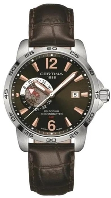 Мужские наручные часы Certina DS Podium GMT C034.455.16.087.01. Точный кварцевый механизм с аналоговой индикацией. Корпус изготовлен из высококачественной нержавеющей стали 316L с высокими антикоррозийными свойствами. На стрелки и отметки нанесен светонакопительный состав, благодаря этому считывать информацию с циферблата возможно и в темноте. На циферблате отображается текущее число месяца. Ремешок изготовлен из кожи. Сапфировое стекло. Искусственно изготовленное стекло с высокой прочностью и устойчивостью к царапинам. Часы являются водонепроницаемыми до 10 Бар. Цвет корпуса: Серебристый. Цвет циферблата: Коричневый. Гарантия: 2 года.
