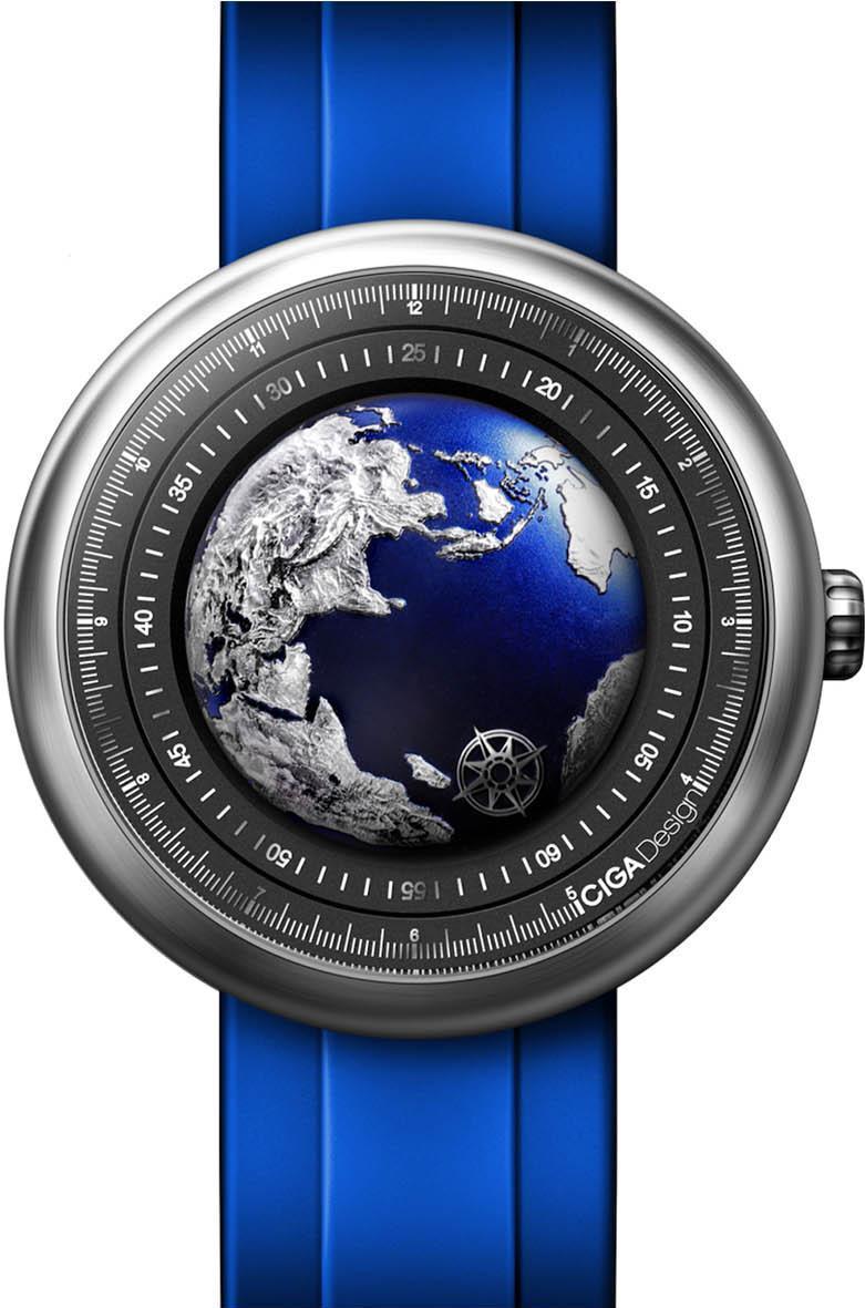 Новаторские уникальные часы позволят вам почувствовать, как течет время, когда земля вращается на вашем запястье. Инновационные наручные часы U-Series Blue Planet с технологией асинхронного отслеживания времени. Удобный и практичный титановый корпус. В механизме 30 камней, частота 28800 полуколебаний в час. Запас хода 40 часов. Центральная часть циферблата представляет собой куполообразную алюминиевую конструкцию с рельефным изображением континентов, окружающих Индийский океан. Вся эта секция вращается с течением времени. Вокруг глобуса расположено вращающееся кольцо для минут и неподвижное кольцо для часов. Минутное кольцо не вращается каждый час, а поворачивается на 360 градусов каждые 60 минут, чтобы совпасть с индикатором часов. Таким образом, время считывается только в одном месте, с помощью единственного указателя - компасной розы, указывающей часы и минуты. Часовая и минутная стрелки выравниваются в любое время суток. Сферическое сапфировое стекло служит напоминанием об атмосфере и той защите, которую она обеспечивает. В дополнение к часам прилагается эксклюзивное колье "Голубая планета".