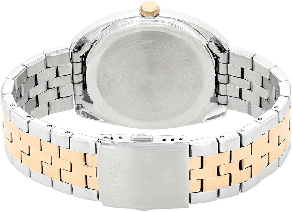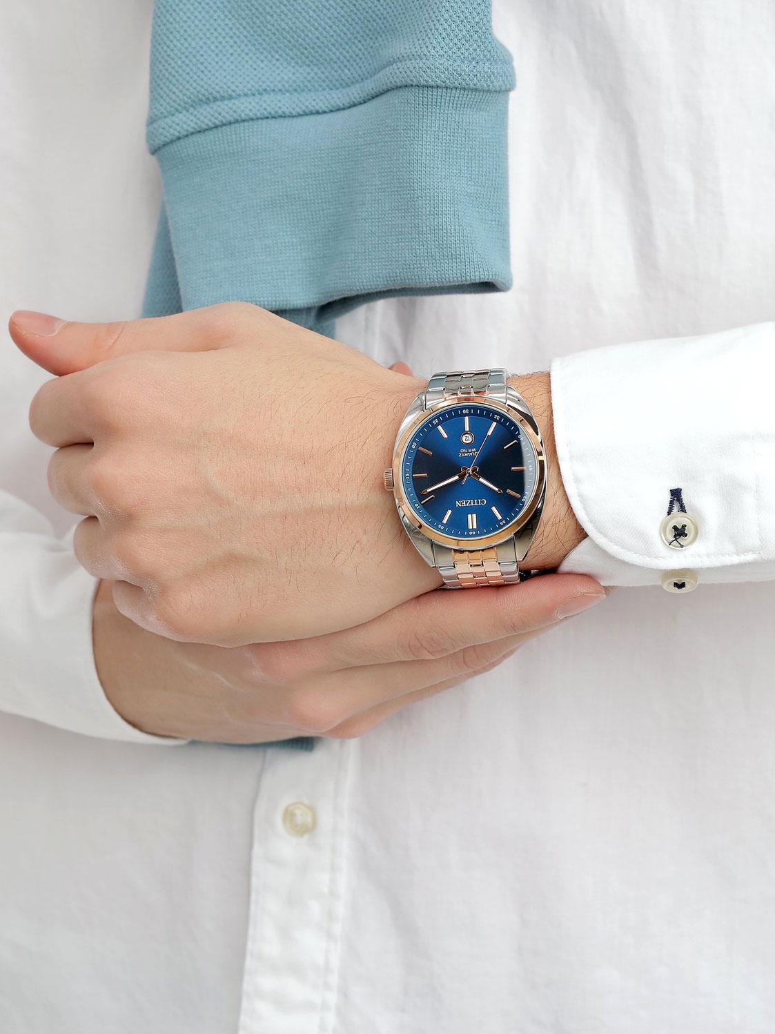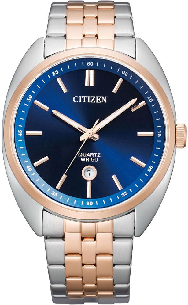 Мужские наручные часы Citizen Basic BI5096-53L. Точный кварцевый механизм с аналоговой индикацией. Браслет из нержавеющей стали. Браслет из нержавеющей стали. Прочное, устойчивое к царапинам минеральное стекло защищает часы от повреждений. На циферблате отображается текущее число месяца. Часы являются водонепроницаемыми до 5 Бар. Цвет циферблата: Серебристый. Цвет циферблата: Розовое золото. Цвет корпуса: Синий. На стрелки и отметки нанесен светонакопительный состав, благодаря этому считывать информацию с циферблата возможно и в темноте. Толщина: 9 мм. Гарантия: 2 года.
