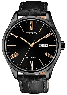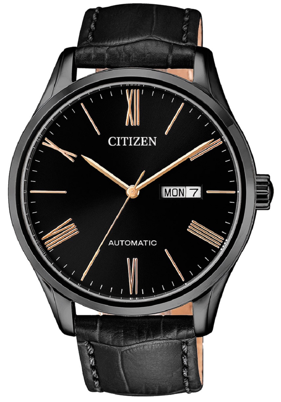 Мужские наручные часы Citizen Automatic NH8365-19F. Механические с автоподзаводом. Пружина механизма заводится автоматически благодаря естественным движениям владельца в процессе ежедневной носки часов. Ремешок изготовлен из кожи. Браслет из нержавеющей стали. Прочное, устойчивое к царапинам минеральное стекло защищает часы от повреждений. На циферблате отображается текущее число месяца и день недели. Часы являются водонепроницаемыми до 5 Бар. Цвет циферблата: Черный. Цвет корпуса: Черный. Толщина: 11 мм. Гарантия: 2 года.