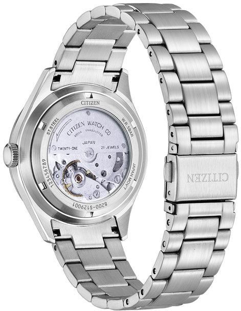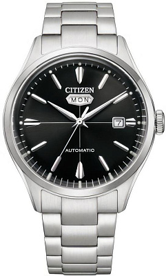 Мужские наручные часы Citizen Automatic NH8391-51E. Механические с ручным подзаводом. Браслет из нержавеющей стали. Браслет из нержавеющей стали. Прочное, устойчивое к царапинам минеральное стекло защищает часы от повреждений. На циферблате отображается текущее число месяца и день недели. Часы являются водонепроницаемыми до 5 Бар. Цвет циферблата: Серебристый. Цвет корпуса: Черный. На стрелки и отметки нанесен светонакопительный состав, благодаря этому считывать информацию с циферблата возможно и в темноте. Толщина: 13 мм. Гарантия: 2 года.