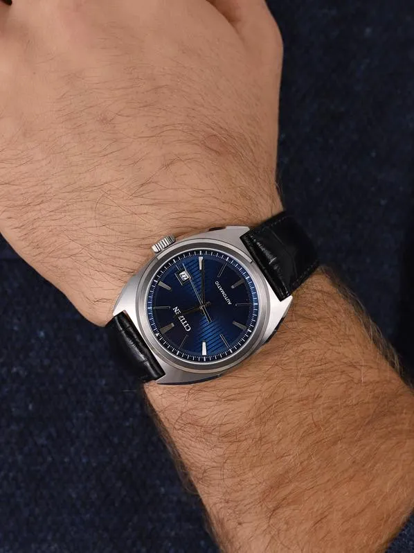 Мужские наручные часы Citizen Citizen Automatic NJ0100-46L. Механические с ручным подзаводом. Корпус изготовлен из высококачественной нержавеющей стали 316L с высокими антикоррозийными свойствами. На циферблате отображается текущее число месяца. Ремешок изготовлен из кожи. Прочное, устойчивое к царапинам минеральное стекло защищает часы от повреждений. Часы являются водонепроницаемыми до 10 Бар. Цвет корпуса: Серебристый. Цвет циферблата: Синий. Гарантия: 2 года.