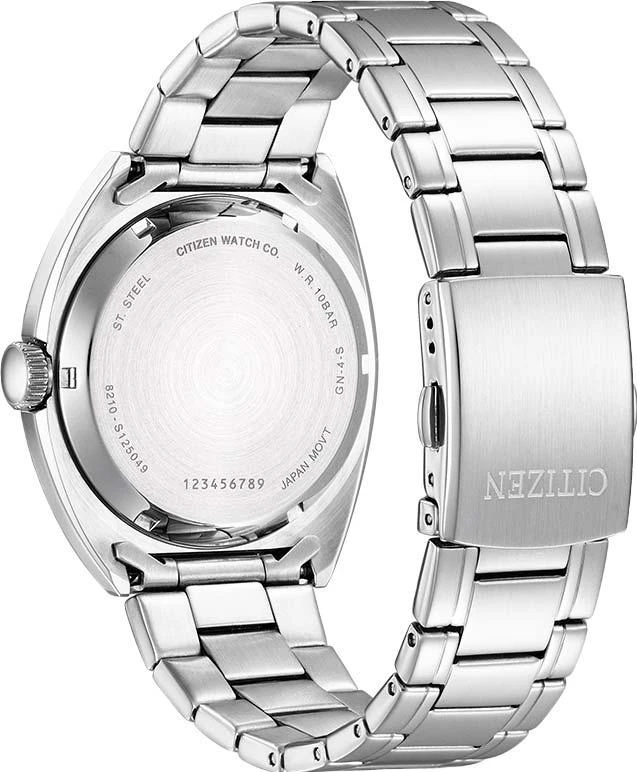 Автоматический механизм 8210 (Miyota 8210) (21 рубиновый камень, запас хода 42 ч, частота полуколебаний баланса 21600 полуоб/час.). Автоподзавод. Центральная секундная стрелка. Окошко даты. • Точность хода не хуже -20 +40 сек. в сутки. • Минеральное стекло устойчивое к возникновению царапин. • Корпус из высококачественного стального сплава 316L с высокими антикоррозийными свойствами. • Водозащита до 10 АТМ. • Литой браслет из нержавеющей стали. • Надежный браслетный замок с тройным сгибом.