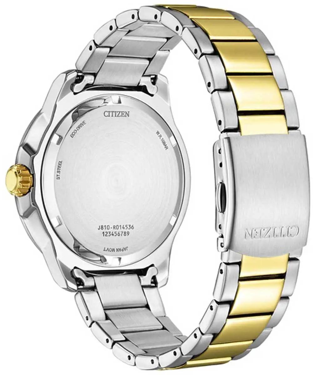 Мужские наручные часы Citizen Eco Drive AW1704-82E. Точный кварцевый механизм с аналоговой индикацией. Браслет из нержавеющей стали. Солнечная батарейка. Солнечная подзаряжающаяся батарейка обеспечивает питание часов для работы. Браслет из нержавеющей стали. Прочное, устойчивое к царапинам минеральное стекло защищает часы от повреждений. На циферблате отображается текущее число месяца. Часы являются водонепроницаемыми до 10 Бар. Цвет циферблата: Серебристый. Цвет циферблата: Черный. Цвет корпуса: Черный. На стрелки и отметки нанесен светонакопительный состав, благодаря этому считывать информацию с циферблата возможно и в темноте. Толщина: 11 мм. Гарантия: 2 года.