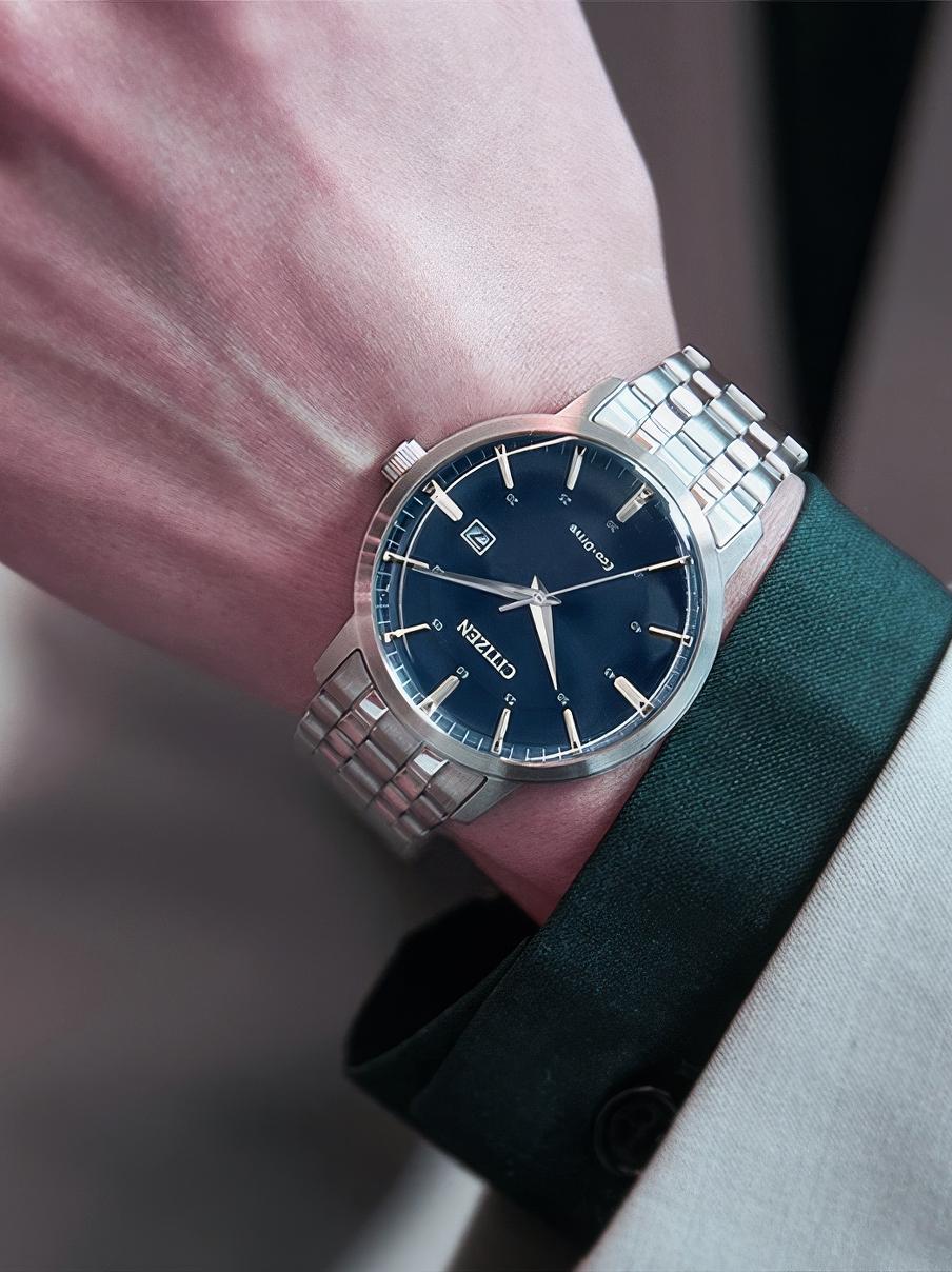Мужские наручные часы Citizen Eco Drive BM7461-85L. Точный кварцевый механизм с аналоговой индикацией. Браслет из нержавеющей стали. Солнечная батарейка. Солнечная подзаряжающаяся батарейка обеспечивает питание часов для работы. Браслет из нержавеющей стали. Прочное, устойчивое к царапинам минеральное стекло защищает часы от повреждений. На циферблате отображается текущее число месяца. Часы являются водонепроницаемыми до 5 Бар. Цвет циферблата: Серебристый. Цвет корпуса: Синий. Толщина: 10 мм. Гарантия: 2 года.