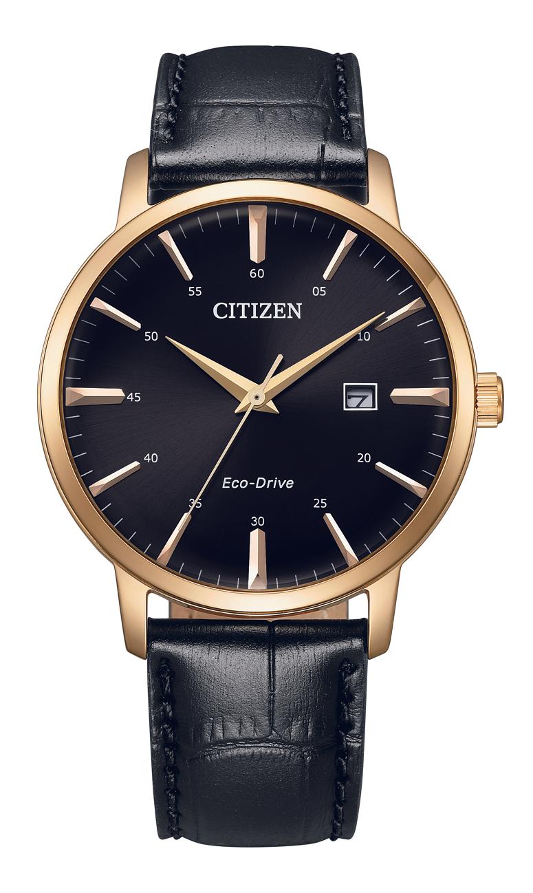 Мужские наручные часы Citizen Eco Drive BM7462-15E. Точный кварцевый механизм с аналоговой индикацией. Ремешок изготовлен из кожи. Солнечная батарейка. Солнечная подзаряжающаяся батарейка обеспечивает питание часов для работы. Браслет из нержавеющей стали. Прочное, устойчивое к царапинам минеральное стекло защищает часы от повреждений. На циферблате отображается текущее число месяца. Часы являются водонепроницаемыми до 5 Бар. Цвет циферблата: Розовое золото. Цвет корпуса: Черный. Толщина: 8 мм. Гарантия: 2 года.