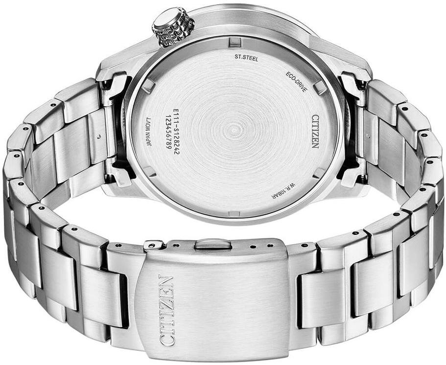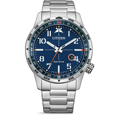 Мужские наручные часы Citizen Eco Drive BM7550-87L. Точный кварцевый механизм с аналоговой индикацией. Браслет из нержавеющей стали. Встроенный цифровой компас определяет северный магнитный полюс. Солнечная батарейка. Солнечная подзаряжающаяся батарейка обеспечивает питание часов для работы. Браслет из нержавеющей стали. Прочное, устойчивое к царапинам минеральное стекло защищает часы от повреждений. На циферблате отображается текущее число месяца. Часы являются водонепроницаемыми до 10 Бар. Цвет циферблата: Серебристый. Цвет корпуса: Синий. На стрелки и отметки нанесен светонакопительный состав, благодаря этому считывать информацию с циферблата возможно и в темноте. Толщина: 12 мм. Гарантия: 2 года.