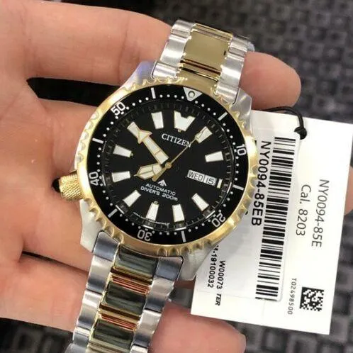 Мужские наручные часы Citizen Promaster NY0094-85E. Механические с ручным подзаводом. Браслет из нержавеющей стали. Браслет из нержавеющей стали. Прочное, устойчивое к царапинам минеральное стекло защищает часы от повреждений. На циферблате отображается текущее число месяца и день недели. Часы являются водонепроницаемыми до 20 Бар. Цвет циферблата: Черный. Цвет циферблата: Желтое золото. Цвет корпуса: Черный. На стрелки и отметки нанесен светонакопительный состав, благодаря этому считывать информацию с циферблата возможно и в темноте. Толщина: 13 мм. Гарантия: 2 года.