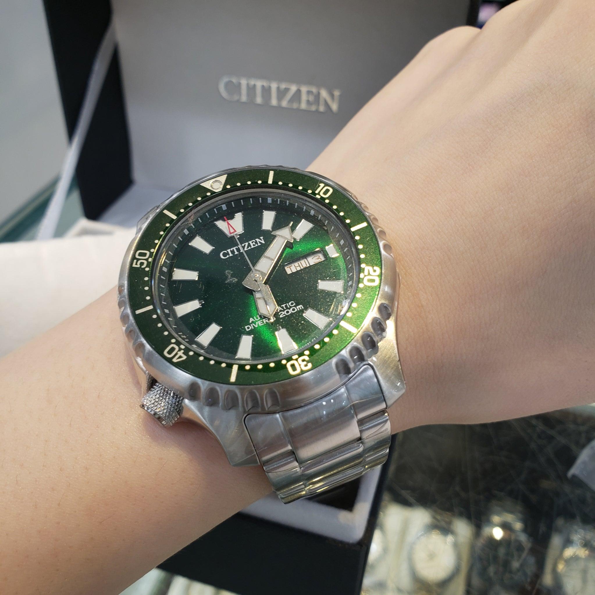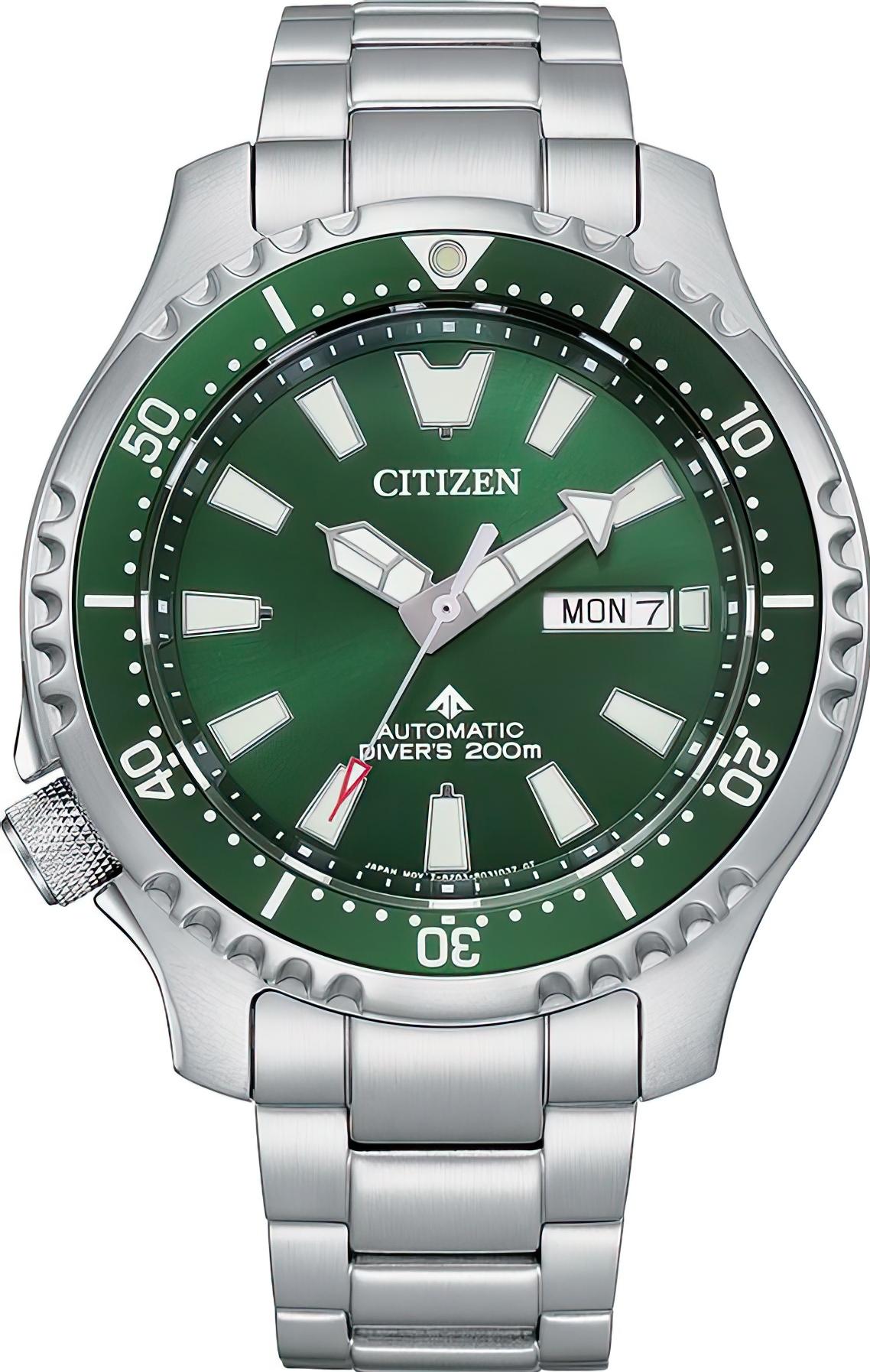 Мужские наручные часы Citizen Promaster NY0131-81X. Механические с ручным подзаводом. Браслет из нержавеющей стали. Браслет из нержавеющей стали. Сапфировое стекло. Искусственно изготовленное стекло с высокой прочностью и устойчивостью к царапинам. На циферблате отображается текущее число месяца и день недели. Часы являются водонепроницаемыми до 20 Бар. Цвет циферблата: Зеленый. Цвет циферблата: Серебристый. Цвет корпуса: Зеленый. На стрелки и отметки нанесен светонакопительный состав, благодаря этому считывать информацию с циферблата возможно и в темноте. Толщина: 13 мм. Гарантия: 2 года.