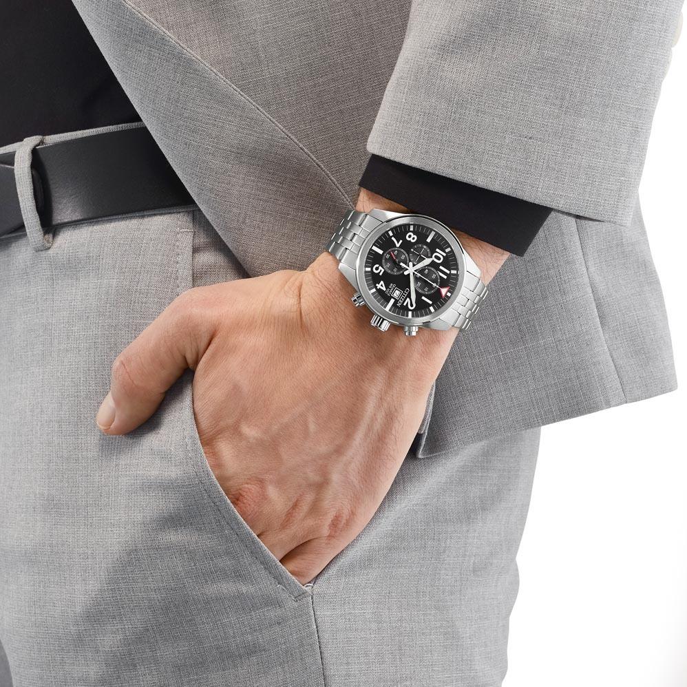 Мужские наручные часы Citizen The Signature Collection AN3620-51E. Точный кварцевый механизм с аналоговой индикацией. Корпус изготовлен из высококачественной нержавеющей стали 316L с высокими антикоррозийными свойствами. На стрелки и отметки нанесен светонакопительный состав, благодаря этому считывать информацию с циферблата возможно и в темноте. На циферблате отображается текущее число месяца. Функция хронографа. Браслет из нержавеющей стали. Прочное, устойчивое к царапинам минеральное стекло защищает часы от повреждений. Часы являются водонепроницаемыми до 10 Бар. Цвет корпуса: Серебристый. Цвет циферблата: Черный. Ширина (с заводной головкой): 43мм. Толщина: 11мм. Гарантия: 2 года.