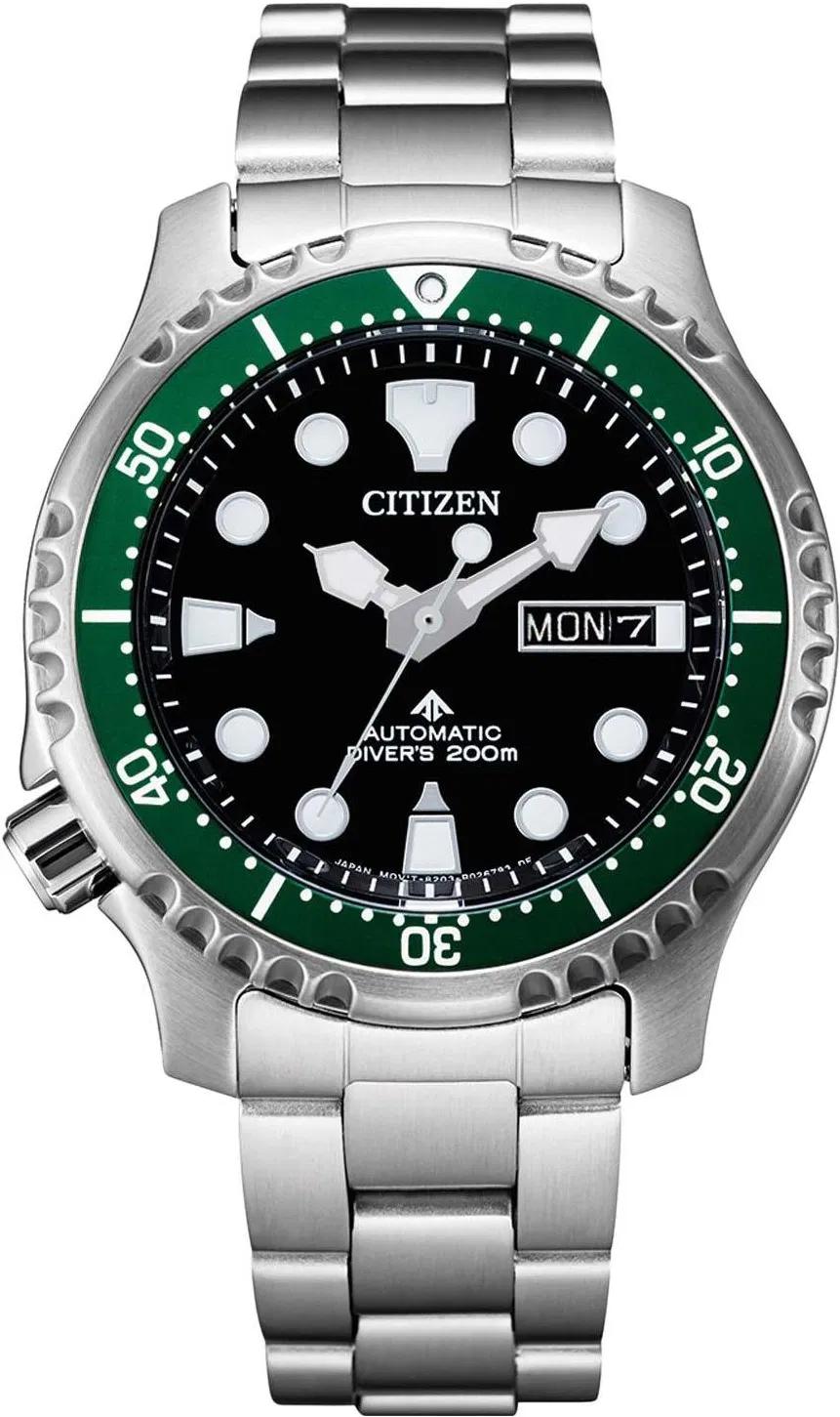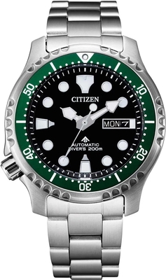 Мужские механические часы с автоподзаводом из серии Promaster. Стальной круглый корпус с однонаправленно поворотным безелем с покрытием зеленого цвета. Минеральное стекло. Стальной браслет с раскладывающейся застежкой. Водозащита 200 м.