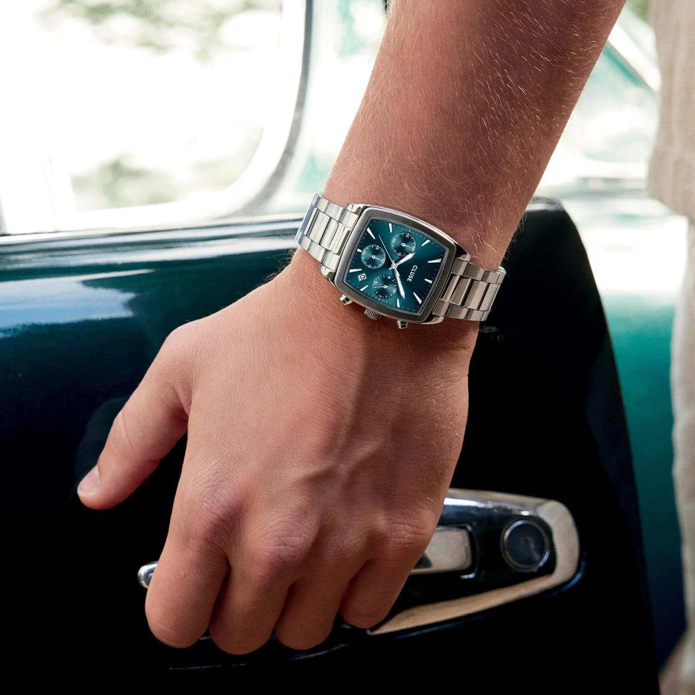 Мужские часы Quartaut Chrono — это уникальное сочетание прочности и роскоши. Модель отличается обтекаемым серебристым корпусом формы «бочка», браслетом из нержавеющей стали в виде трехзвенной цепочки и синим циферблатом с тремя дополнительными шкалами. Идеально проработанный дизайн обеспечивает комфорт и стиль.