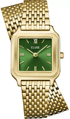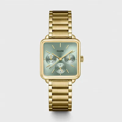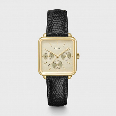 Квадратные женские часы Gracieuse Petite имеют корпус золотистого цвета диаметром 24 мм, циферблат с изображением заката и ремешок из нержавеющей стали золотистого цвета шириной 14 мм. Легко персонализируйте свои часы с помощью любого ремешка CLUSE шириной 14 мм.