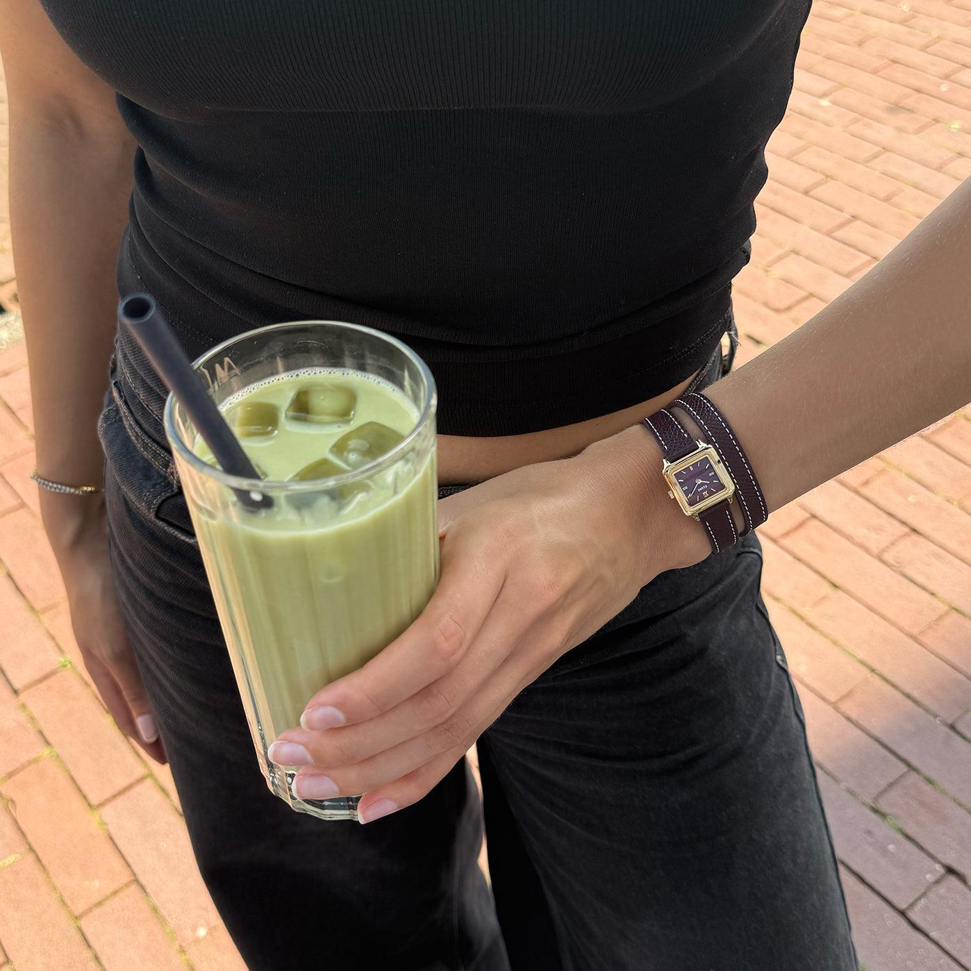 Квадратные женские часы Gracieuse Mini имеют корпус золотистого цвета диаметром 21 мм, циферблат бордового цвета и двойной ремешок из кожи бордового цвета шириной 12 мм с белой строчкой. Легко персонализируйте свои часы с помощью любого ремешка CLUSE шириной 12 мм.