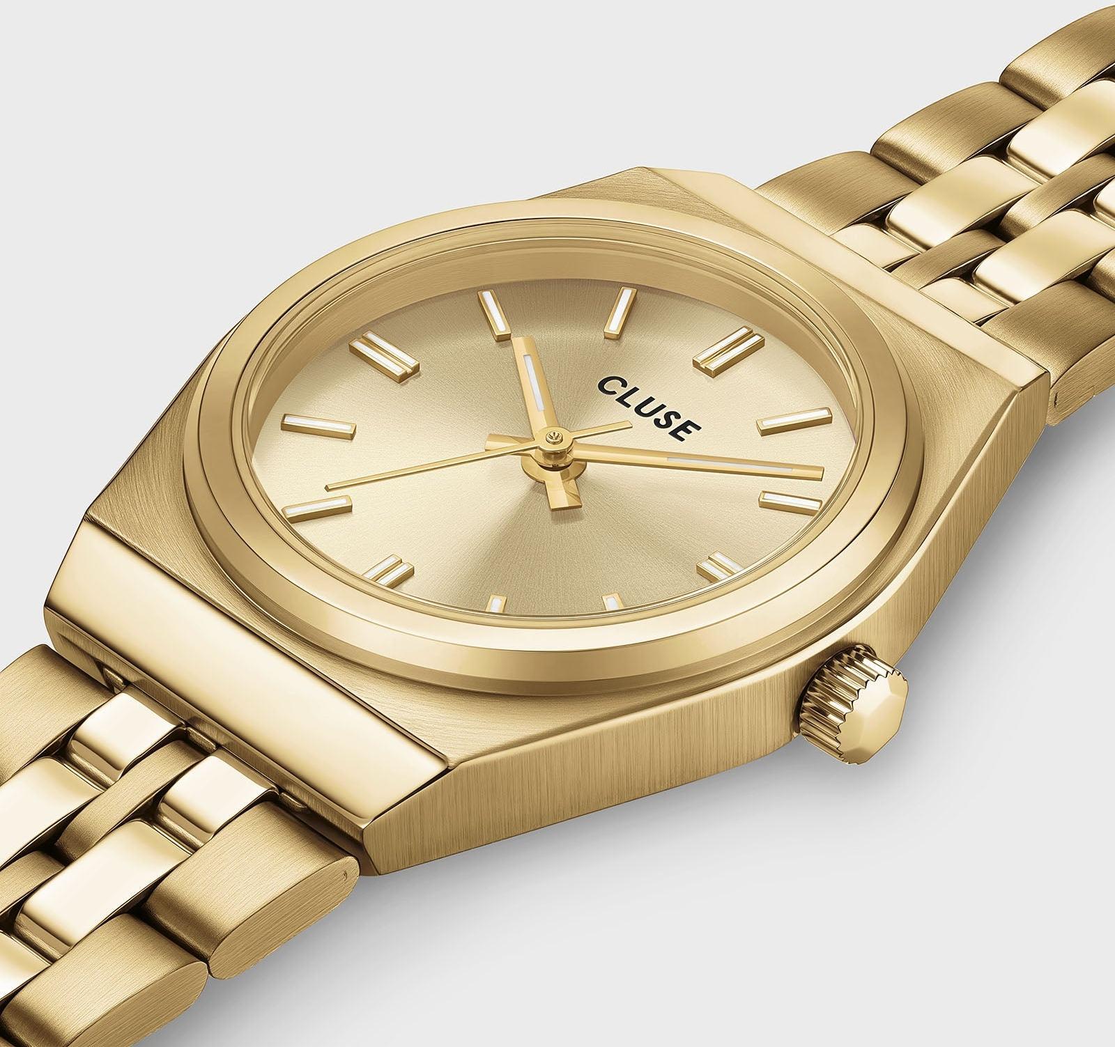 . Точный кварцевый механизм с аналоговой индикацией. В отличие от механических часов, не требуют завода и работают от батареи, показывая отклонение всего несколько секунд в месяц. Браслет из нержавеющей стали обладает высокой прочностью и износостойкостью, обеспечивая долговечность даже при активной эксплуатации. Материал устойчив к коррозии и сохраняет свой внешний вид надолго. Корпус изготовлен из высококачественной нержавеющей стали 316L с высокими антикоррозийными свойствами. Прочное, устойчивое к царапинам минеральное стекло защищает часы от повреждений. Часы являются водонепроницаемыми до 5 Бар. Цвет корпуса: Желтое золото. Цвет циферблата: Золотистый. Высота (с ушками): 32 мм. Толщина: 7 мм. Гарантия: 2 года.