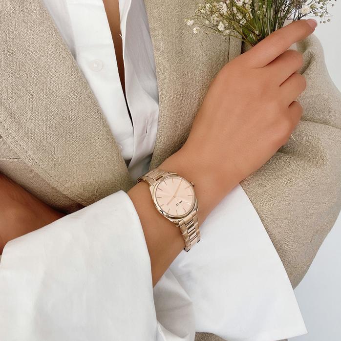 <b>Женские наручные часы Cluse Feroce Petite CW11201.</b> Точный кварцевый механизм с аналоговой индикацией. Корпус изготовлен из высококачественной нержавеющей стали 316L с высокими антикоррозийными свойствами. Аккумулятор обеспечивает часы достаточным питанием приблизительно на 3 года. Браслет из нержавеющей стали. Прочное, устойчивое к царапинам минеральное стекло защищает часы от повреждений. Часы являются водонепроницаемыми до 5 Бар. Цвет корпуса: Розовое золото. Цвет циферблата: Золотистый. Ширина (с заводной головкой): 32мм. Толщина: 7мм. Гарантия: 2 года.