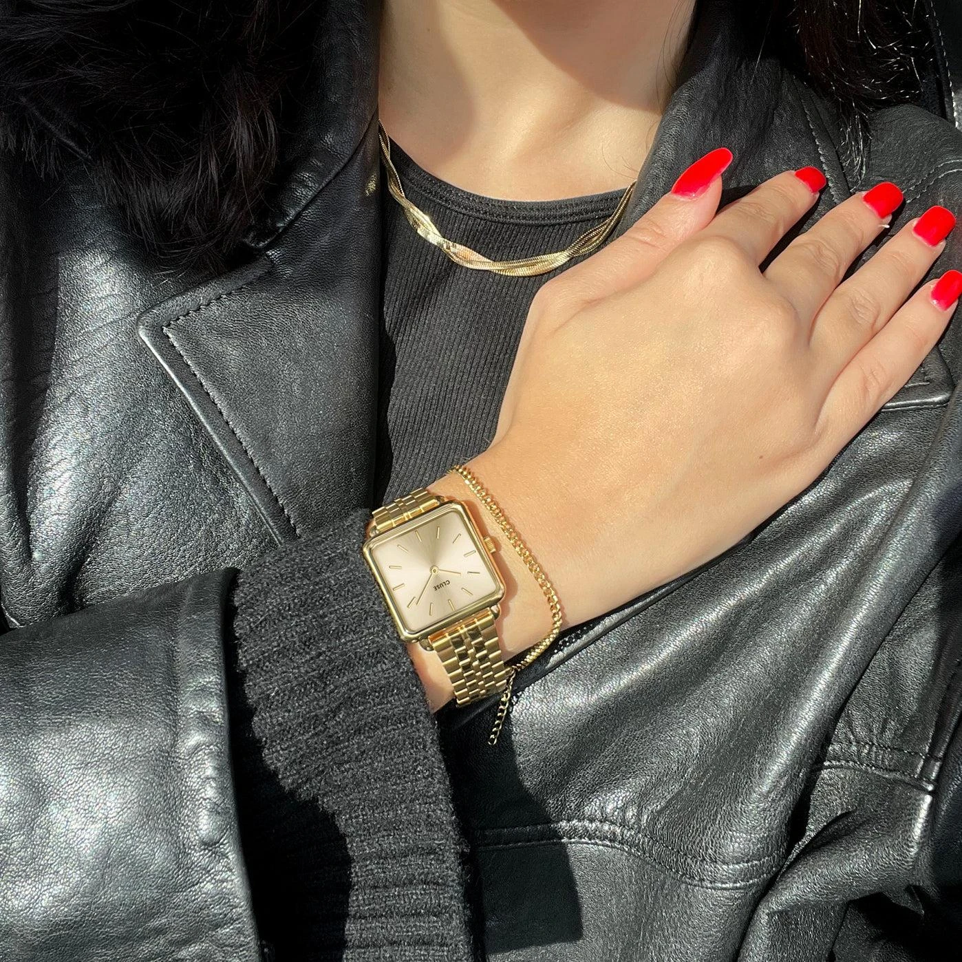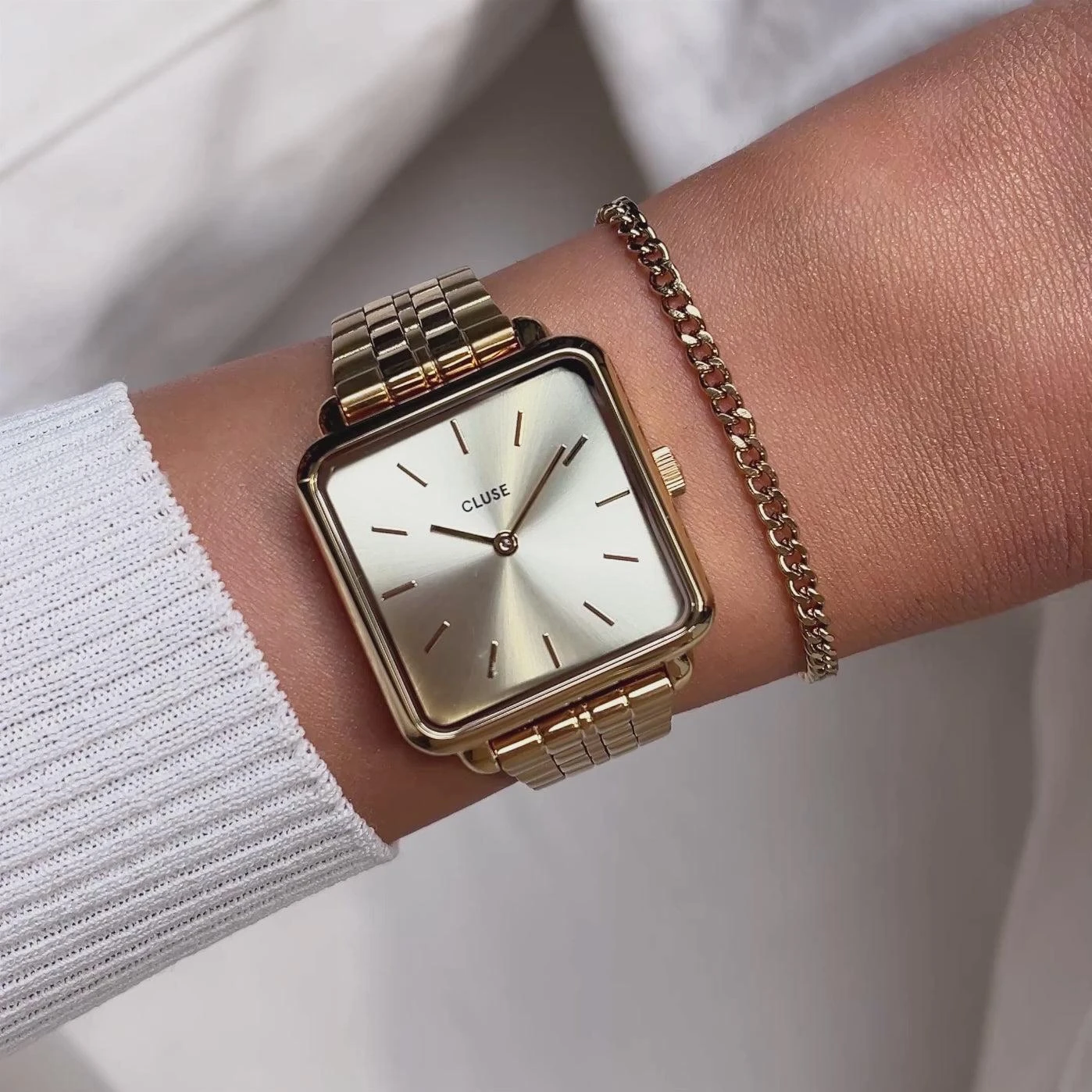 Представляем часы La T?tragone из цельного золота и браслет-цепочку Curb Chain — элегантный дуэт. Женские часы CLUSE La T?tragone имеют квадратный корпус золотого цвета диаметром 28,5 мм и циферблат с пятизвеньевым ремешком. Дополнив их дополнительным браслетом-цепочкой золотистого цвета, вы получите идеальный аксессуар для любого случая.