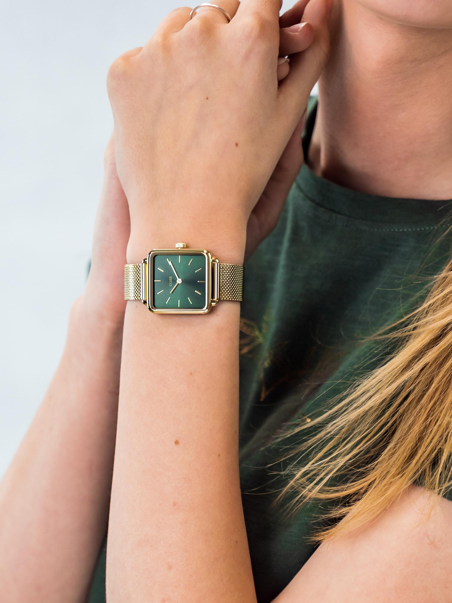 <b>Женские наручные часы Cluse La Tetragone CW0101207013.</b> Точный кварцевый механизм с аналоговой индикацией. Корпус изготовлен из высококачественной нержавеющей стали 316L с высокими антикоррозийными свойствами. Браслет из нержавеющей стали. Прочное, устойчивое к царапинам минеральное стекло защищает часы от повреждений. Часы являются водонепроницаемыми до 3 Бар. Цвет корпуса: Желтое золото. Цвет циферблата: Зеленый. Ширина (с заводной головкой): 28мм. Толщина: 7мм. Гарантия: 2 года.