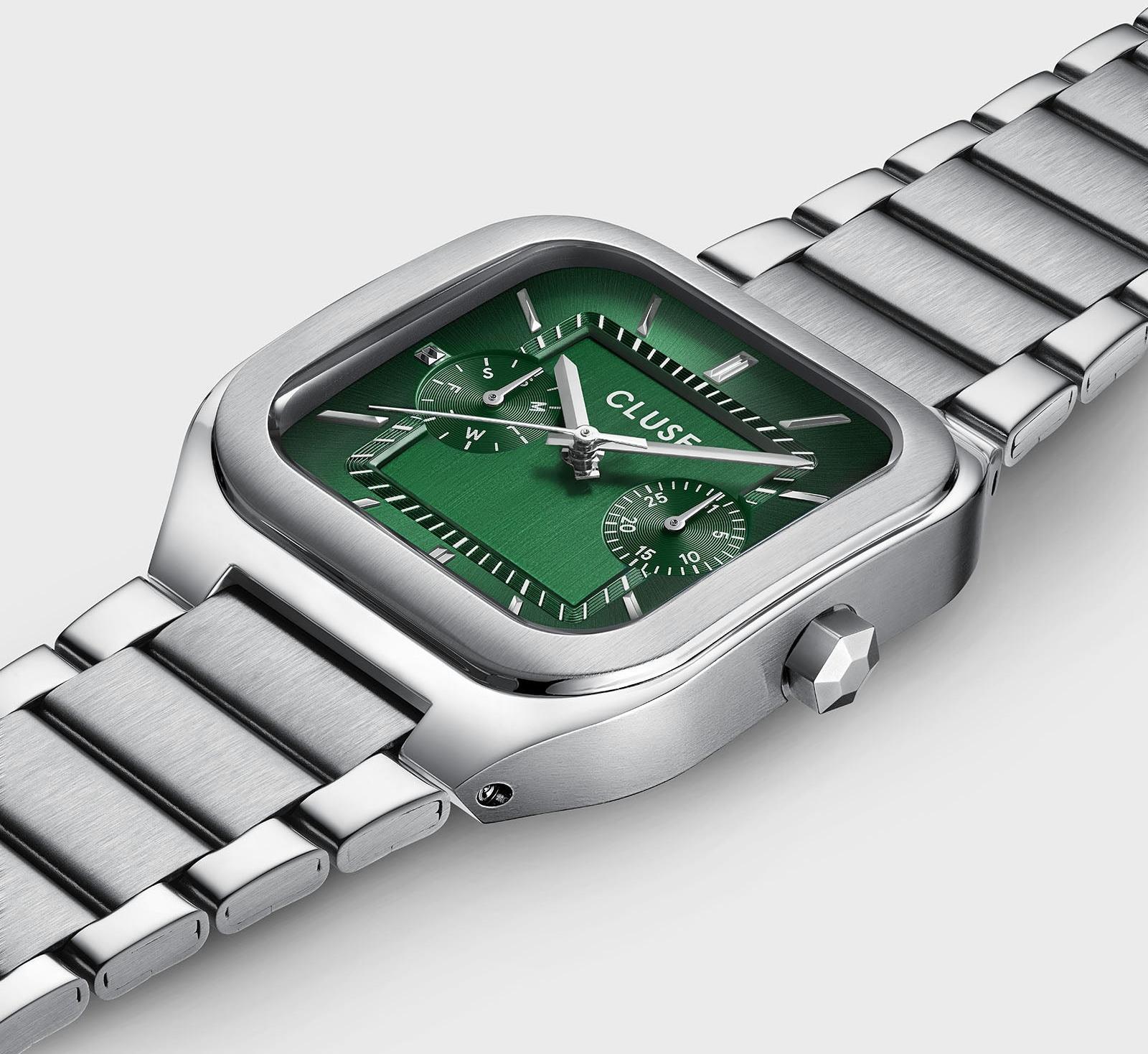 . Точный кварцевый механизм с аналоговой индикацией. В отличие от механических часов, не требуют завода и работают от батареи, показывая отклонение всего несколько секунд в месяц. Браслет из нержавеющей стали обладает высокой прочностью и износостойкостью, обеспечивая долговечность даже при активной эксплуатации. Материал устойчив к коррозии и сохраняет свой внешний вид надолго. Корпус изготовлен из высококачественной нержавеющей стали 316L с высокими антикоррозийными свойствами. Прочное, устойчивое к царапинам минеральное стекло защищает часы от повреждений. Часы являются водонепроницаемыми до 5 Бар. Цвет корпуса: Серебристый. Цвет циферблата: Зеленый. Высота (с ушками): 41 мм. Толщина: 9 мм. Гарантия: 2 года.