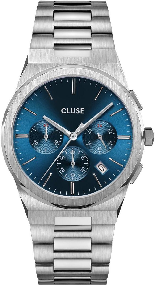 Мужские наручные часы Cluse Vigoureux CW20801. Точный кварцевый механизм с аналоговой индикацией. Корпус изготовлен из высококачественной нержавеющей стали 316L с высокими антикоррозийными свойствами. На стрелки и отметки нанесен светонакопительный состав, благодаря этому считывать информацию с циферблата возможно и в темноте. На циферблате отображается текущее число месяца. Функция хронографа. Отображение времени возможно в 12-часовом или 24-часовом формате. Браслет из нержавеющей стали. Прочное, устойчивое к царапинам минеральное стекло защищает часы от повреждений. Часы являются водонепроницаемыми до 5 Бар. Цвет корпуса: Серебристый. Цвет циферблата: Синий. Ширина (с заводной головкой): 40мм. Толщина: 11мм. Гарантия: 2 года.