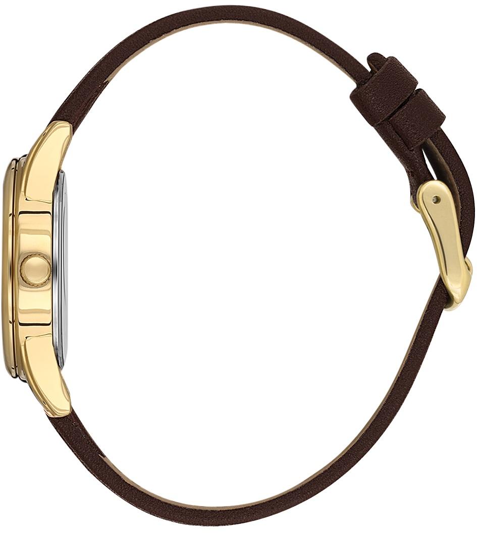 Женские наручные часы Daniel Klein Arcadia 13847-5. Точный кварцевый механизм с аналоговой индикацией. Ремешок изготовлен из кожи. Латунный браслет. Прочное, устойчивое к царапинам минеральное стекло защищает часы от повреждений. Часы являются водонепроницаемыми до 3 Бар. Цвет циферблата: Желтое золото. Цвет корпуса: Серебристый. Толщина: 8 мм. Гарантия: 1 год.