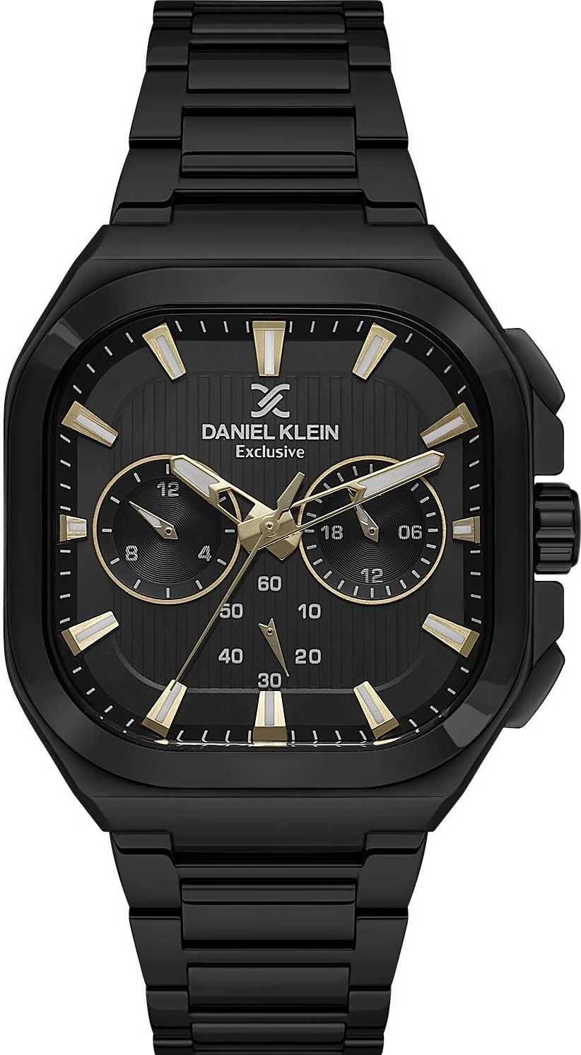 Мужские наручные часы Daniel Klein Exclusive 13903-5. Точный кварцевый механизм с аналоговой индикацией. В отличие от механических часов, не требуют завода и работают от батареи, показывая отклонение всего несколько секунд в месяц. На стрелки и отметки нанесен светонакопительный состав, благодаря этому считывать информацию с циферблата возможно и в темноте. Браслет из нержавеющей стали обладает высокой прочностью и износостойкостью, обеспечивая долговечность даже при активной эксплуатации. Материал устойчив к коррозии и сохраняет свой внешний вид надолго. Отображение времени возможно в 12-часовом или 24-часовом формате. Корпус изготовлен из высококачественной часовой латуни с высокими антикоррозийными свойствами. Прочное, устойчивое к царапинам минеральное стекло защищает часы от повреждений. Часы являются водонепроницаемыми до 5 Бар. Цвет корпуса: Черный. Цвет циферблата: Черный. Высота (с ушками): 49.5 мм. Толщина: 13 мм. Гарантия: 1 год.