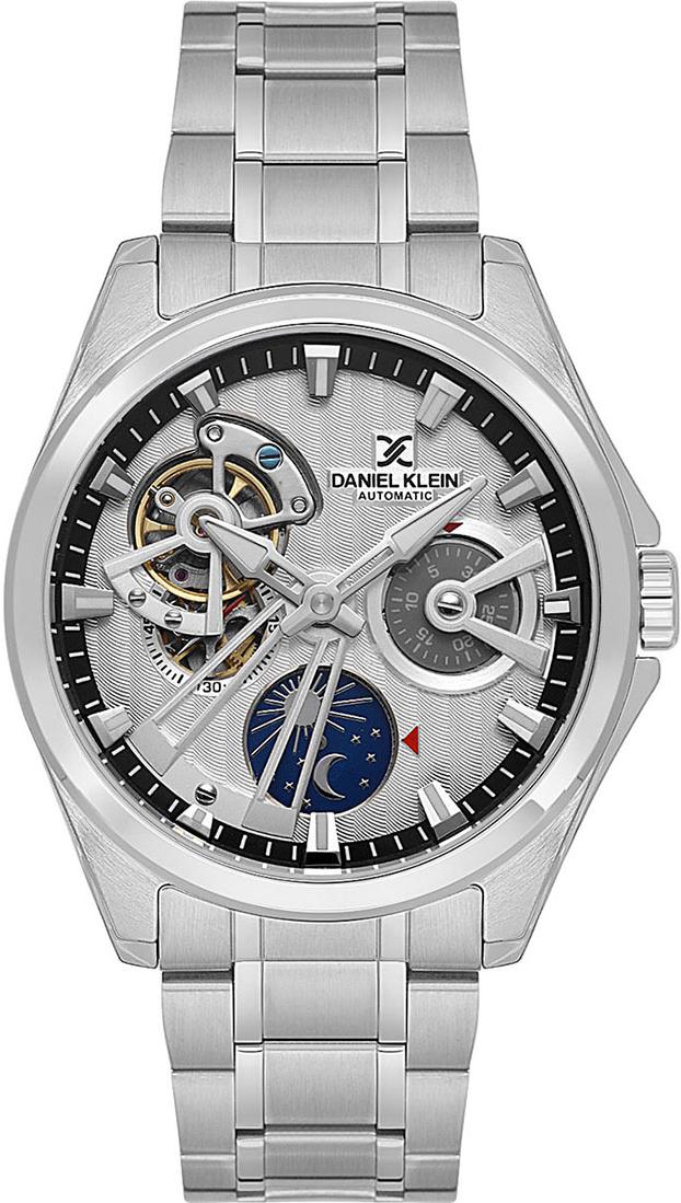 Мужские наручные часы Daniel Klein Exclusive 14048-1. Механические с автоподзаводом. Пружина механизма заводится автоматически благодаря естественным движениям владельца в процессе ежедневной носки часов. Браслет из нержавеющей стали обладает высокой прочностью и износостойкостью, обеспечивая долговечность даже при активной эксплуатации. Материал устойчив к коррозии и сохраняет свой внешний вид надолго. Корпус изготовлен из высококачественной часовой латуни с высокими антикоррозийными свойствами. Прочное, устойчивое к царапинам минеральное стекло защищает часы от повреждений. Часы являются водонепроницаемыми до 5 Бар. Цвет корпуса: Серебристый. Цвет циферблата: Серебристый. Высота (с ушками): 43 мм. Толщина: 15 мм. Гарантия: 1 год.