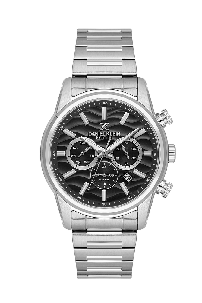 Мужские наручные часы Daniel Klein Exclusive 14062-1. Точный кварцевый механизм с аналоговой индикацией. В отличие от механических часов, не требуют завода и работают от батареи, показывая отклонение всего несколько секунд в месяц. На стрелки и отметки нанесен светонакопительный состав, благодаря этому считывать информацию с циферблата возможно и в темноте. Браслет из нержавеющей стали обладает высокой прочностью и износостойкостью, обеспечивая долговечность даже при активной эксплуатации. Материал устойчив к коррозии и сохраняет свой внешний вид надолго. Отображение времени возможно в 12-часовом или 24-часовом формате. Корпус изготовлен из высококачественной часовой латуни с высокими антикоррозийными свойствами. Прочное, устойчивое к царапинам минеральное стекло защищает часы от повреждений. Часы являются водонепроницаемыми до 5 Бар. Цвет корпуса: Серебристый. Цвет циферблата: Черный. Высота (с ушками): 52 мм. Толщина: 12 мм. Гарантия: 1 год.