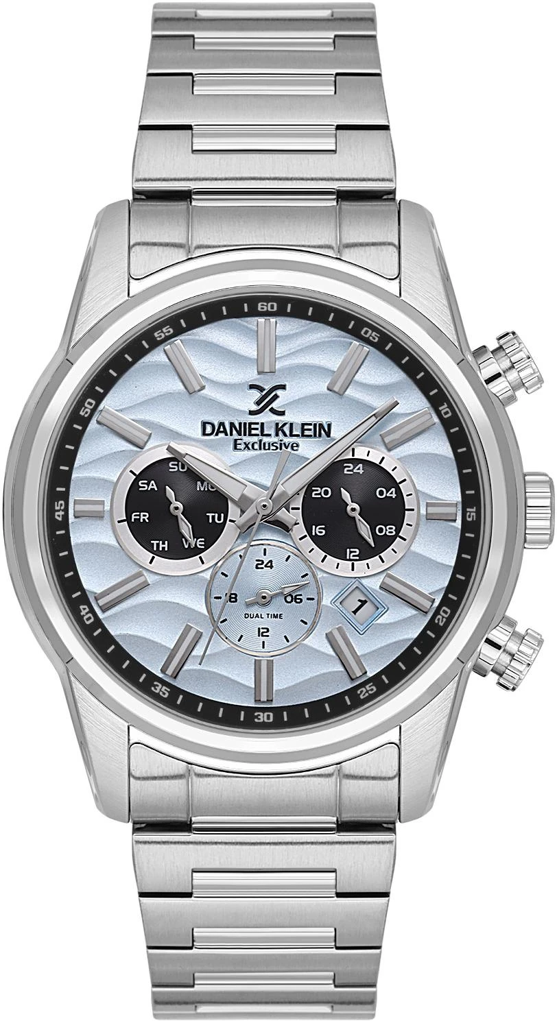 Мужские наручные часы Daniel Klein Exclusive 14062-3. Точный кварцевый механизм с аналоговой индикацией. В отличие от механических часов, не требуют завода и работают от батареи, показывая отклонение всего несколько секунд в месяц. Браслет из нержавеющей стали обладает высокой прочностью и износостойкостью, обеспечивая долговечность даже при активной эксплуатации. Материал устойчив к коррозии и сохраняет свой внешний вид надолго. Отображение времени возможно в 12-часовом или 24-часовом формате. Корпус изготовлен из высококачественной часовой латуни с высокими антикоррозийными свойствами. Прочное, устойчивое к царапинам минеральное стекло защищает часы от повреждений. Часы являются водонепроницаемыми до 3 Бар. Цвет корпуса: Серебристый. Цвет циферблата: Голубой. Гарантия: 1 год.