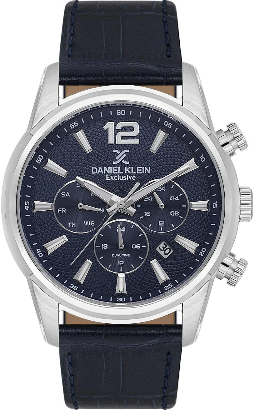 Мужские наручные часы Daniel Klein Exclusive 14063-2. Точный кварцевый механизм с аналоговой индикацией. В отличие от механических часов, не требуют завода и работают от батареи, показывая отклонение всего несколько секунд в месяц. На стрелки и отметки нанесен светонакопительный состав, благодаря этому считывать информацию с циферблата возможно и в темноте. Ремешок изготовлен из кожи. Гибкость такого ремешка позволяет точно регулировать посадку часов на руке. Отображение времени возможно в 12-часовом или 24-часовом формате. Корпус изготовлен из высококачественной часовой латуни с высокими антикоррозийными свойствами. Прочное, устойчивое к царапинам минеральное стекло защищает часы от повреждений. Часы являются водонепроницаемыми до 5 Бар. Цвет корпуса: Серебристый. Цвет циферблата: Синий. Высота (с ушками): 52 мм. Толщина: 12 мм. Гарантия: 1 год.