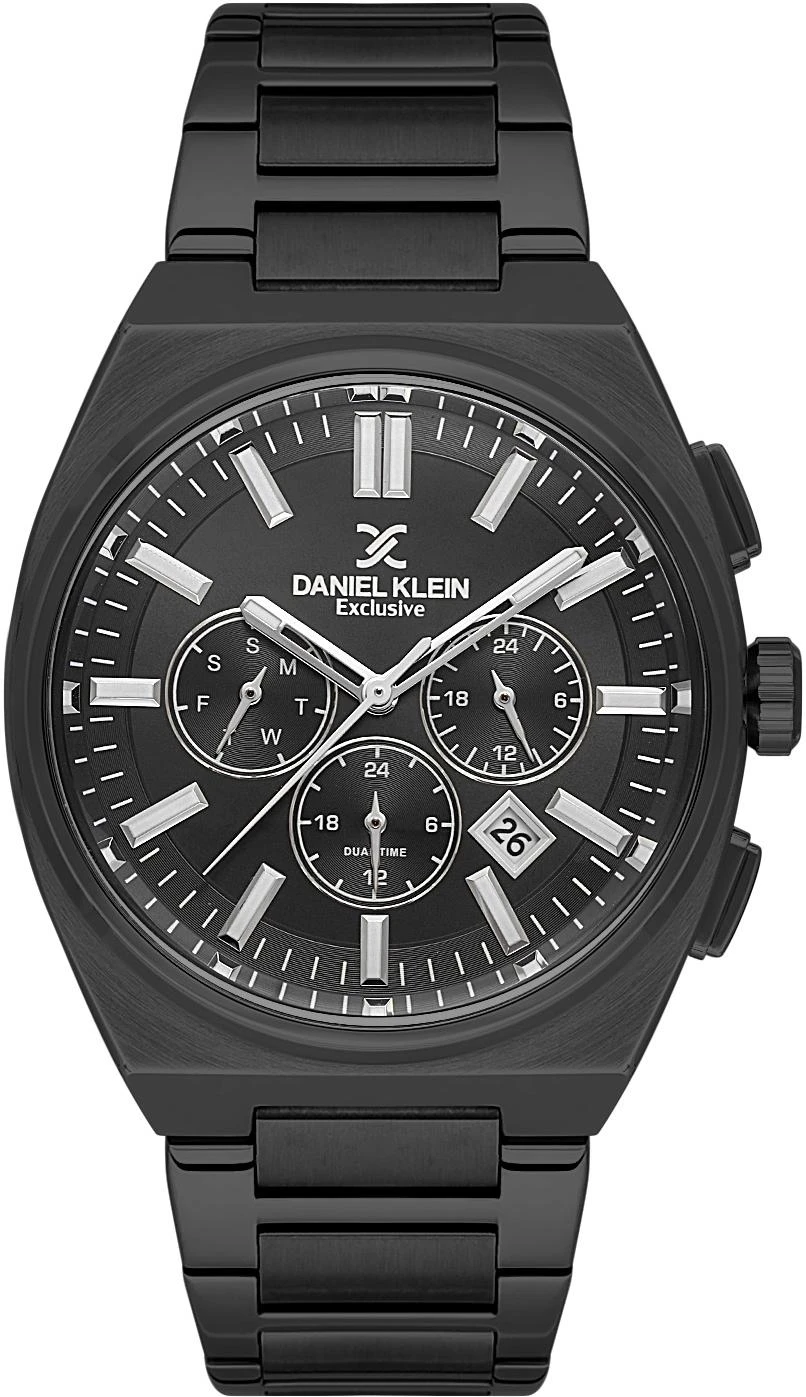 Мужские наручные часы Daniel Klein Exclusive 14080-5. Точный кварцевый механизм с аналоговой индикацией. В отличие от механических часов, не требуют завода и работают от батареи, показывая отклонение всего несколько секунд в месяц. На стрелки и отметки нанесен светонакопительный состав, благодаря этому считывать информацию с циферблата возможно и в темноте. Браслет из нержавеющей стали обладает высокой прочностью и износостойкостью, обеспечивая долговечность даже при активной эксплуатации. Материал устойчив к коррозии и сохраняет свой внешний вид надолго. Отображение времени возможно в 12-часовом или 24-часовом формате. Корпус изготовлен из высококачественной часовой латуни с высокими антикоррозийными свойствами. Прочное, устойчивое к царапинам минеральное стекло защищает часы от повреждений. Часы являются водонепроницаемыми до 5 Бар. Цвет корпуса: Черный. Цвет циферблата: Черный. Высота (с ушками): 43 мм. Толщина: 13 мм. Гарантия: 1 год.