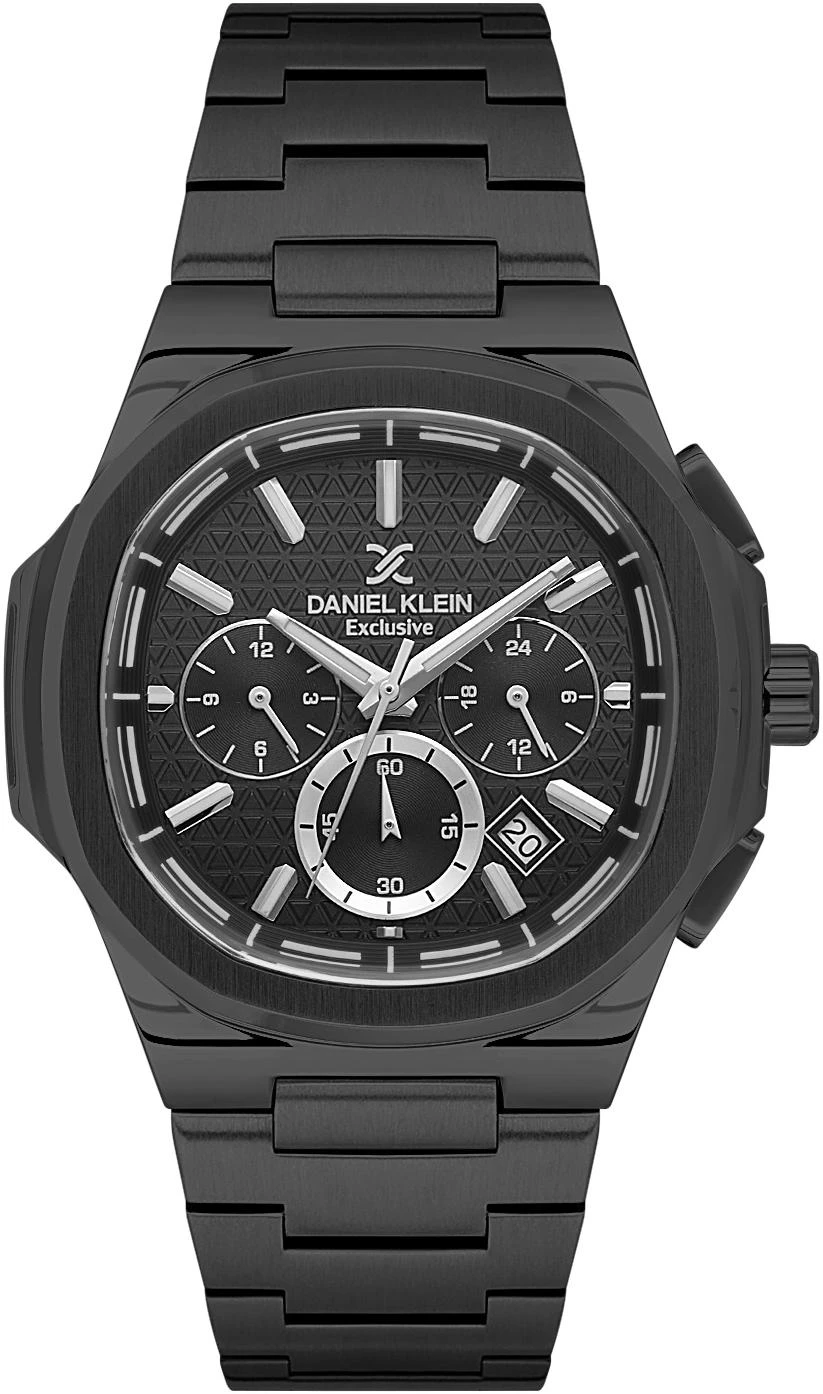 Мужские наручные часы Daniel Klein Exclusive 14082-5. Точный кварцевый механизм с аналоговой индикацией. В отличие от механических часов, не требуют завода и работают от батареи, показывая отклонение всего несколько секунд в месяц. На стрелки и отметки нанесен светонакопительный состав, благодаря этому считывать информацию с циферблата возможно и в темноте. Браслет из нержавеющей стали обладает высокой прочностью и износостойкостью, обеспечивая долговечность даже при активной эксплуатации. Материал устойчив к коррозии и сохраняет свой внешний вид надолго. Функция хронографа. Отображение времени возможно в 12-часовом или 24-часовом формате. Корпус изготовлен из высококачественной часовой латуни с высокими антикоррозийными свойствами. Прочное, устойчивое к царапинам минеральное стекло защищает часы от повреждений. Часы являются водонепроницаемыми до 5 Бар. Цвет корпуса: Черный. Цвет циферблата: Черный. Высота (с ушками): 49 мм. Толщина: 13 мм. Гарантия: 1 год.