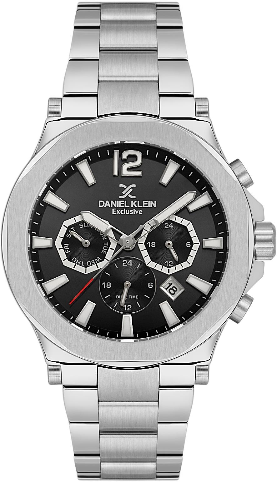 Мужские наручные часы Daniel Klein Exclusive 14216-1. Точный кварцевый механизм с аналоговой индикацией. В отличие от механических часов, не требуют завода и работают от батареи, показывая отклонение всего несколько секунд в месяц. Браслет из нержавеющей стали обладает высокой прочностью и износостойкостью, обеспечивая долговечность даже при активной эксплуатации. Материал устойчив к коррозии и сохраняет свой внешний вид надолго. Отображение времени возможно в 12-часовом или 24-часовом формате. Корпус изготовлен из высококачественной часовой латуни с высокими антикоррозийными свойствами. Прочное, устойчивое к царапинам минеральное стекло защищает часы от повреждений. Часы являются водонепроницаемыми до 5 Бар. Цвет корпуса: Серебристый. Цвет циферблата: Черный. Высота (с ушками): 45 мм. Гарантия: 1 год.