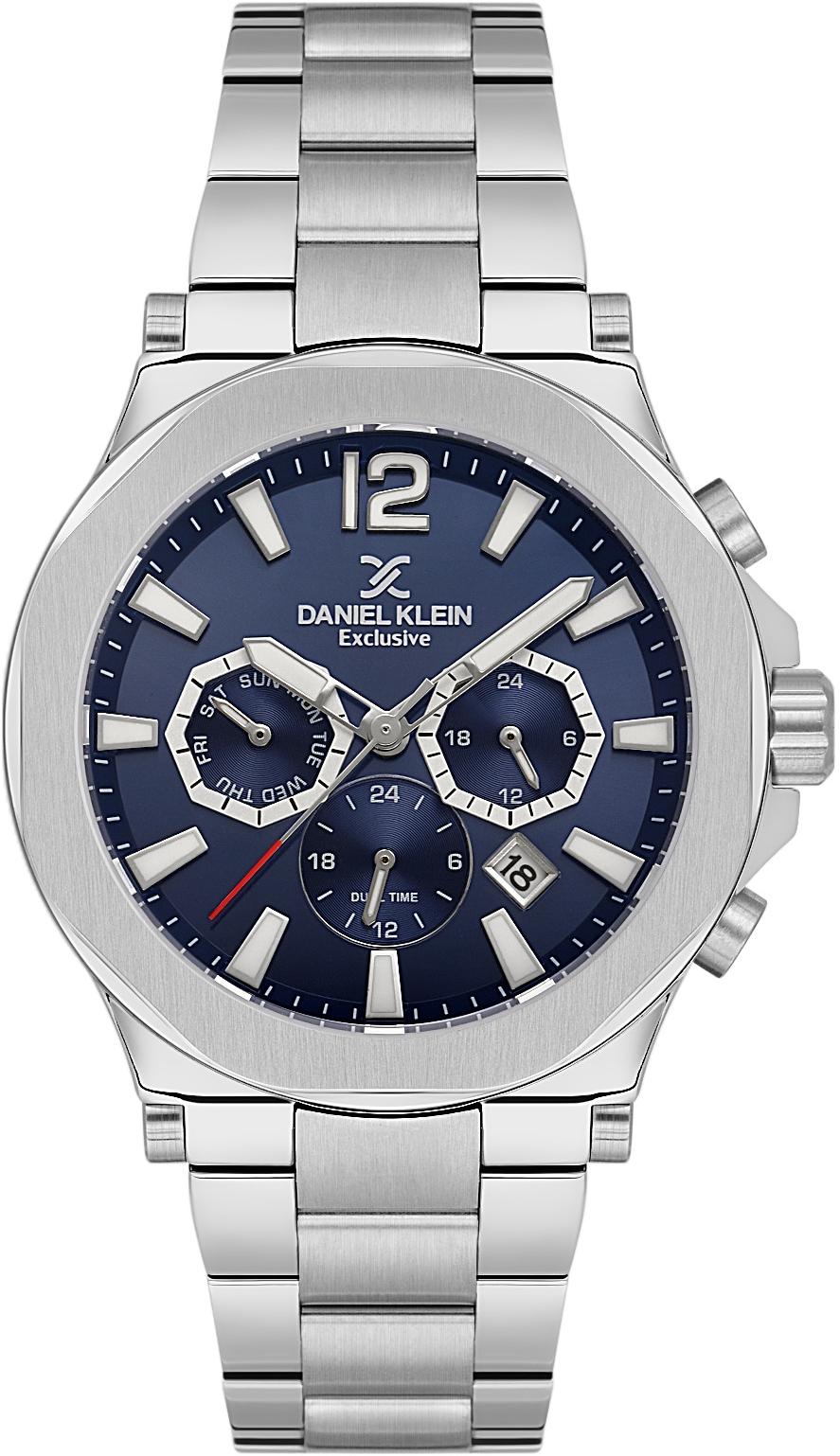 Мужские наручные часы Daniel Klein Exclusive 14216-2. Точный кварцевый механизм с аналоговой индикацией. В отличие от механических часов, не требуют завода и работают от батареи, показывая отклонение всего несколько секунд в месяц. Браслет из нержавеющей стали обладает высокой прочностью и износостойкостью, обеспечивая долговечность даже при активной эксплуатации. Материал устойчив к коррозии и сохраняет свой внешний вид надолго. Отображение времени возможно в 12-часовом или 24-часовом формате. Корпус изготовлен из высококачественной часовой латуни с высокими антикоррозийными свойствами. Прочное, устойчивое к царапинам минеральное стекло защищает часы от повреждений. Часы являются водонепроницаемыми до 5 Бар. Цвет корпуса: Серебристый. Цвет циферблата: Синий. Высота (с ушками): 45 мм. Гарантия: 1 год.
