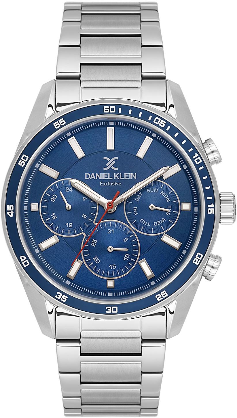 Мужские наручные часы Daniel Klein Exclusive 14220-3. Точный кварцевый механизм с аналоговой индикацией. В отличие от механических часов, не требуют завода и работают от батареи, показывая отклонение всего несколько секунд в месяц. Браслет из нержавеющей стали обладает высокой прочностью и износостойкостью, обеспечивая долговечность даже при активной эксплуатации. Материал устойчив к коррозии и сохраняет свой внешний вид надолго. Отображение времени возможно в 12-часовом или 24-часовом формате. Корпус изготовлен из высококачественной часовой латуни с высокими антикоррозийными свойствами. Прочное, устойчивое к царапинам минеральное стекло защищает часы от повреждений. Часы являются водонепроницаемыми до 5 Бар. Цвет корпуса: Серебристый. Цвет циферблата: Синий. Высота (с ушками): 43 мм. Гарантия: 1 год.