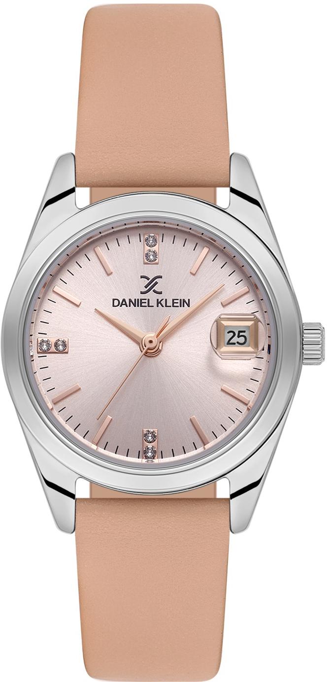 Женские наручные часы Daniel Klein Premium 13759-3. Точный кварцевый механизм с аналоговой индикацией. Ремешок изготовлен из кожи. После настройки автоматический календарь всегда отображает точную дату. Латунный браслет. Прочное, устойчивое к царапинам минеральное стекло защищает часы от повреждений. На циферблате отображается текущее число месяца. Часы являются водонепроницаемыми до 3 Бар. Цвет циферблата: Серебристый. Цвет корпуса: Бежевый. Толщина: 7 мм. Гарантия: 1 год.