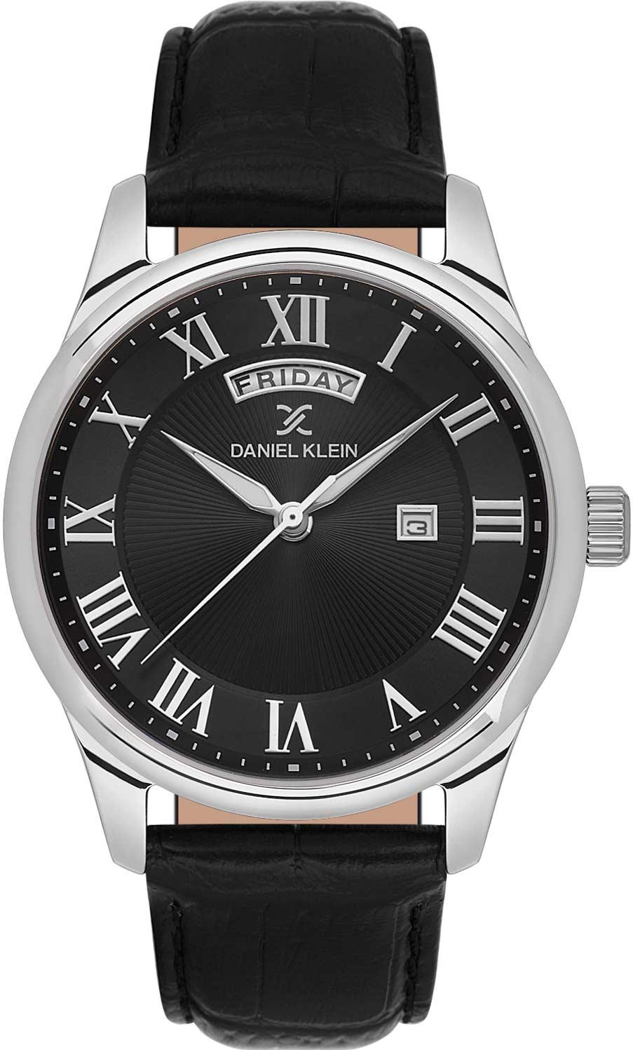 Мужские наручные часы Daniel Klein Premium 13819-1. Точный кварцевый механизм с аналоговой индикацией. Ремешок изготовлен из кожи. После настройки автоматический календарь всегда отображает точную дату. Латунный браслет. Прочное, устойчивое к царапинам минеральное стекло защищает часы от повреждений. На циферблате отображается текущее число месяца и день недели. Часы являются водонепроницаемыми до 5 Бар. Цвет циферблата: Серебристый. Цвет корпуса: Черный. Толщина: 10 мм. Гарантия: 1 год.