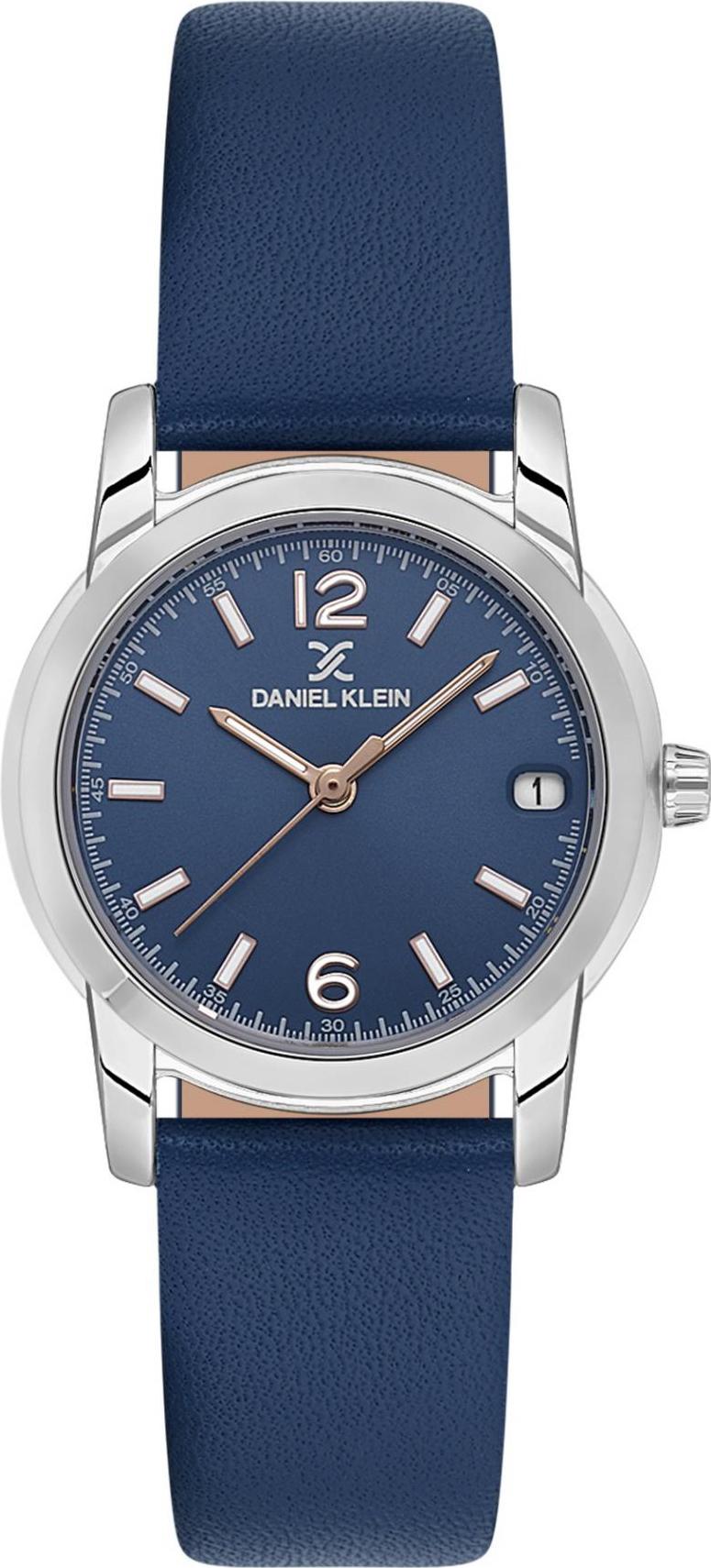 Женские наручные часы Daniel Klein Premium 13822-3. Точный кварцевый механизм с аналоговой индикацией. Ремешок изготовлен из кожи. После настройки автоматический календарь всегда отображает точную дату. Латунный браслет. Прочное, устойчивое к царапинам минеральное стекло защищает часы от повреждений. На циферблате отображается текущее число месяца. Часы являются водонепроницаемыми до 3 Бар. Цвет циферблата: Серебристый. Цвет корпуса: Синий. На стрелки и отметки нанесен светонакопительный состав, благодаря этому считывать информацию с циферблата возможно и в темноте. Толщина: 8 мм. Гарантия: 1 год.