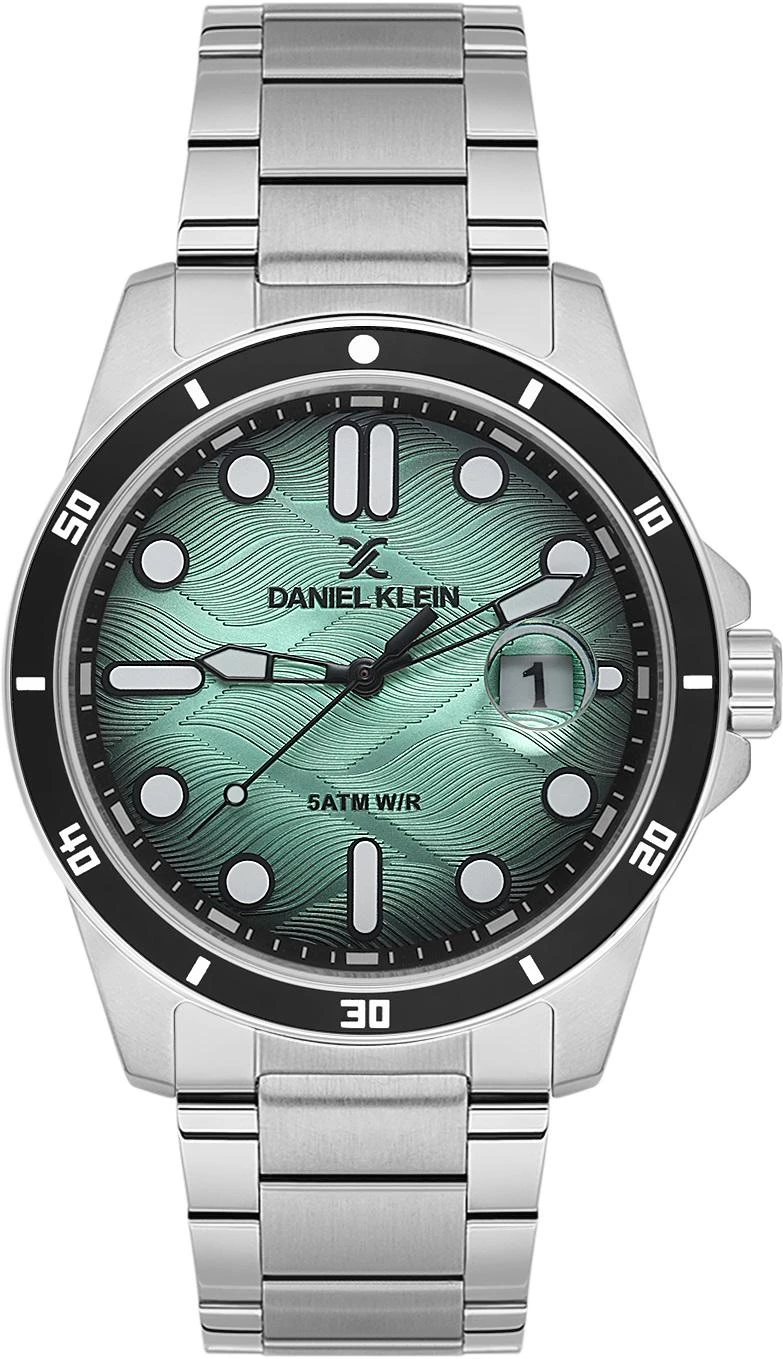 Мужские наручные часы Daniel Klein Premium 14066-4. Точный кварцевый механизм с аналоговой индикацией. В отличие от механических часов, не требуют завода и работают от батареи, показывая отклонение всего несколько секунд в месяц. На стрелки и отметки нанесен светонакопительный состав, благодаря этому считывать информацию с циферблата возможно и в темноте. Браслет из нержавеющей стали обладает высокой прочностью и износостойкостью, обеспечивая долговечность даже при активной эксплуатации. Материал устойчив к коррозии и сохраняет свой внешний вид надолго. Корпус изготовлен из высококачественной часовой латуни с высокими антикоррозийными свойствами. Прочное, устойчивое к царапинам минеральное стекло защищает часы от повреждений. Часы являются водонепроницаемыми до 5 Бар. Цвет корпуса: Серебристый. Цвет циферблата: Зеленый. Высота (с ушками): 50 мм. Толщина: 12 мм. Гарантия: 1 год.