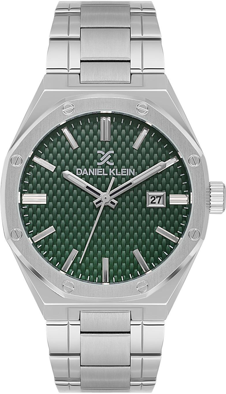 Мужские наручные часы Daniel Klein Premium 14081-4. Точный кварцевый механизм с аналоговой индикацией. В отличие от механических часов, не требуют завода и работают от батареи, показывая отклонение всего несколько секунд в месяц. На стрелки и отметки нанесен светонакопительный состав, благодаря этому считывать информацию с циферблата возможно и в темноте. Браслет из нержавеющей стали обладает высокой прочностью и износостойкостью, обеспечивая долговечность даже при активной эксплуатации. Материал устойчив к коррозии и сохраняет свой внешний вид надолго. Корпус изготовлен из высококачественной часовой латуни с высокими антикоррозийными свойствами. Прочное, устойчивое к царапинам минеральное стекло защищает часы от повреждений. Часы являются водонепроницаемыми до 5 Бар. Цвет корпуса: Серебристый. Цвет циферблата: Зеленый. Высота (с ушками): 44 мм. Толщина: 12 мм. Гарантия: 1 год.