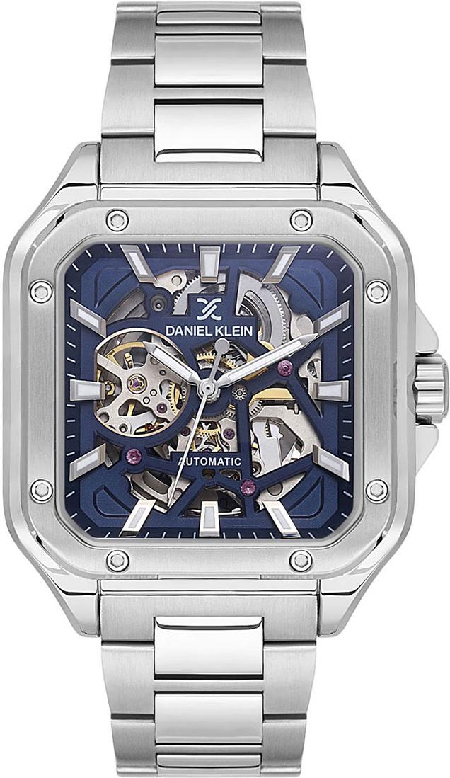 Мужские наручные часы Daniel Klein Skeleton 14018-3. Механические с автоподзаводом. Пружина механизма заводится автоматически благодаря естественным движениям владельца в процессе ежедневной носки часов. На стрелки и отметки нанесен светонакопительный состав, благодаря этому считывать информацию с циферблата возможно и в темноте. Браслет из нержавеющей стали обладает высокой прочностью и износостойкостью, обеспечивая долговечность даже при активной эксплуатации. Материал устойчив к коррозии и сохраняет свой внешний вид надолго. Корпус изготовлен из высококачественной часовой латуни с высокими антикоррозийными свойствами. Прочное, устойчивое к царапинам минеральное стекло защищает часы от повреждений. Часы являются водонепроницаемыми до 5 Бар. Цвет корпуса: Серебристый. Цвет циферблата: Синий. Высота (с ушками): 49.5 мм. Толщина: 13 мм. Гарантия: 1 год.