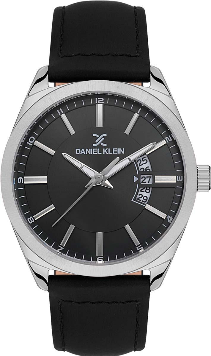 Мужские наручные часы Daniel Klein Trendy 13555-1. Точный кварцевый механизм с аналоговой индикацией. Корпус изготовлен из высококачественной нержавеющей стали 316L с высокими антикоррозийными свойствами. На стрелки и отметки нанесен светонакопительный состав, благодаря этому считывать информацию с циферблата возможно и в темноте. На циферблате отображается текущее число месяца. Ремешок изготовлен из кожи. Прочное, устойчивое к царапинам минеральное стекло защищает часы от повреждений. Часы являются водонепроницаемыми до 5 Бар. Цвет корпуса: Серебристый. Цвет циферблата: Черный. Ширина (с заводной головкой): 42мм. Толщина: 10мм. Гарантия: 1 год.